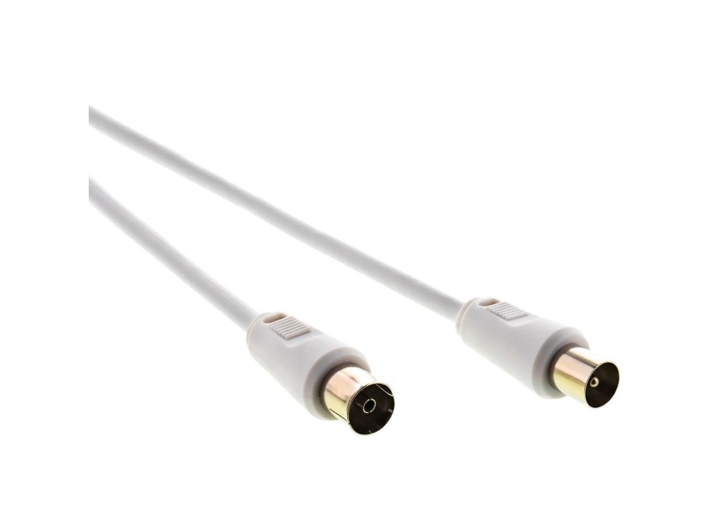 Anténní koaxiální kabel, plně stíněný, konektory IEC vidlice - zásuvka, délka 15m, balení visačka, barva bílá
