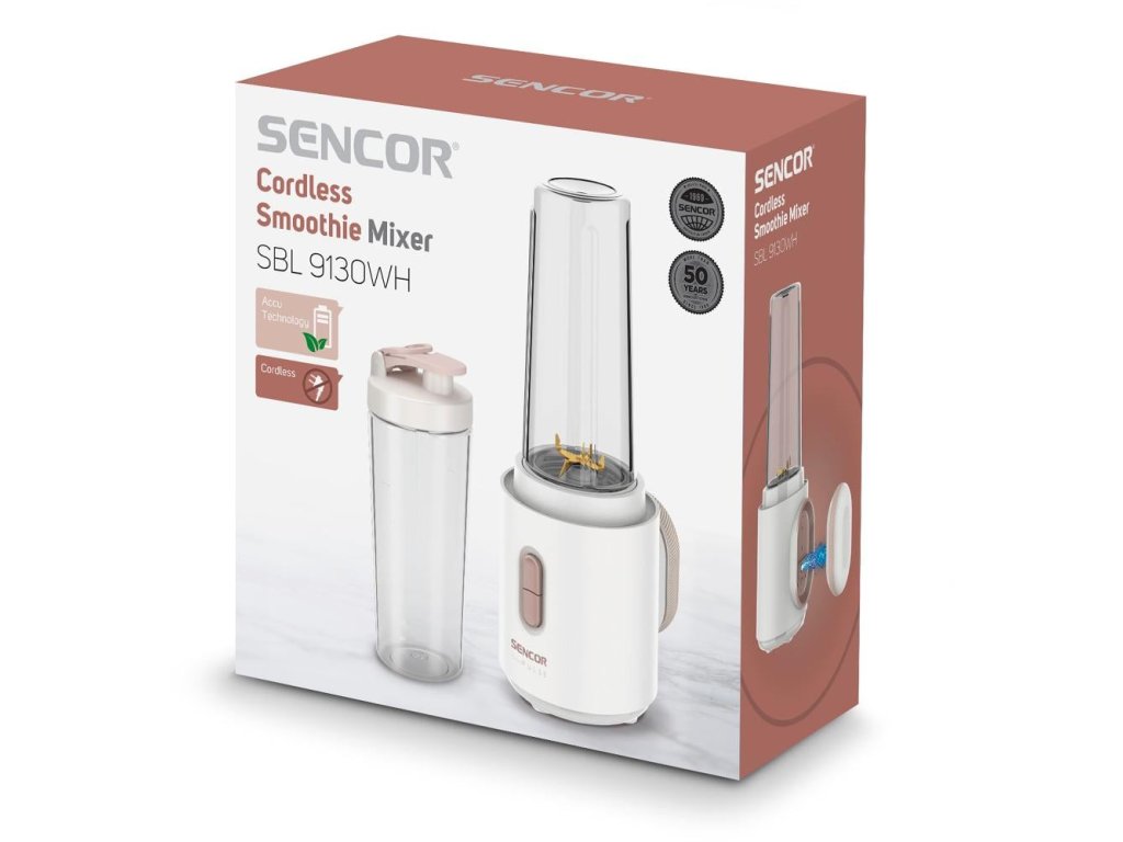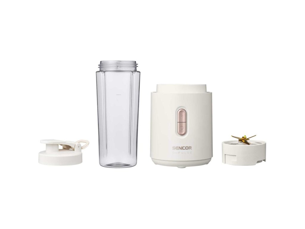 Obsah balení: Součástí balení je motorová jednotka, baterie, 500 ml mixovací nádoba, víčko na pití, nožová jednotka, nabíjecí kabel USB-C.