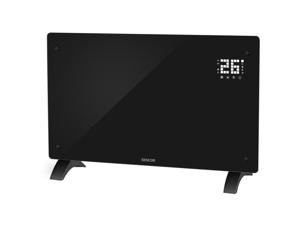 skleněný konvektor • příkon 2000 W • nabízí 3 režimy provozu Eco, Comfort a Antifrost • nastavení teploty 5–50 °C • Wi-Fi ovládání přes mobilní aplikaci • funkce 24-h časovače a 7/24 týdenního programu • hmotnost: 6,7 kg
