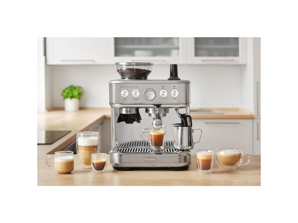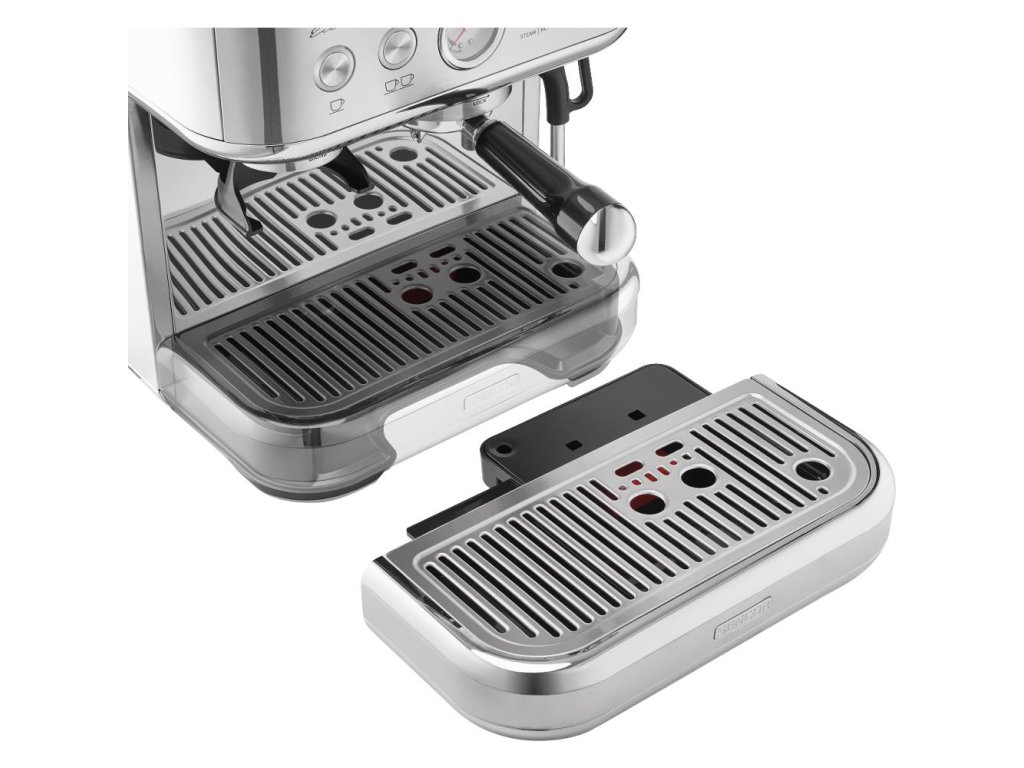 pákové espresso • tlak čerpadla 15 barů • 15stupňové nastavení mlýnku • příkon 1 770 W • automatický senzor mletí • funkce předspaření • ukazatel tlaku při extrakci kávy • deska na ohřev šálků • zásobník na vodu 2,3 l • zásobník na kávová zrna 250 g