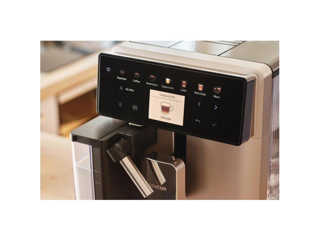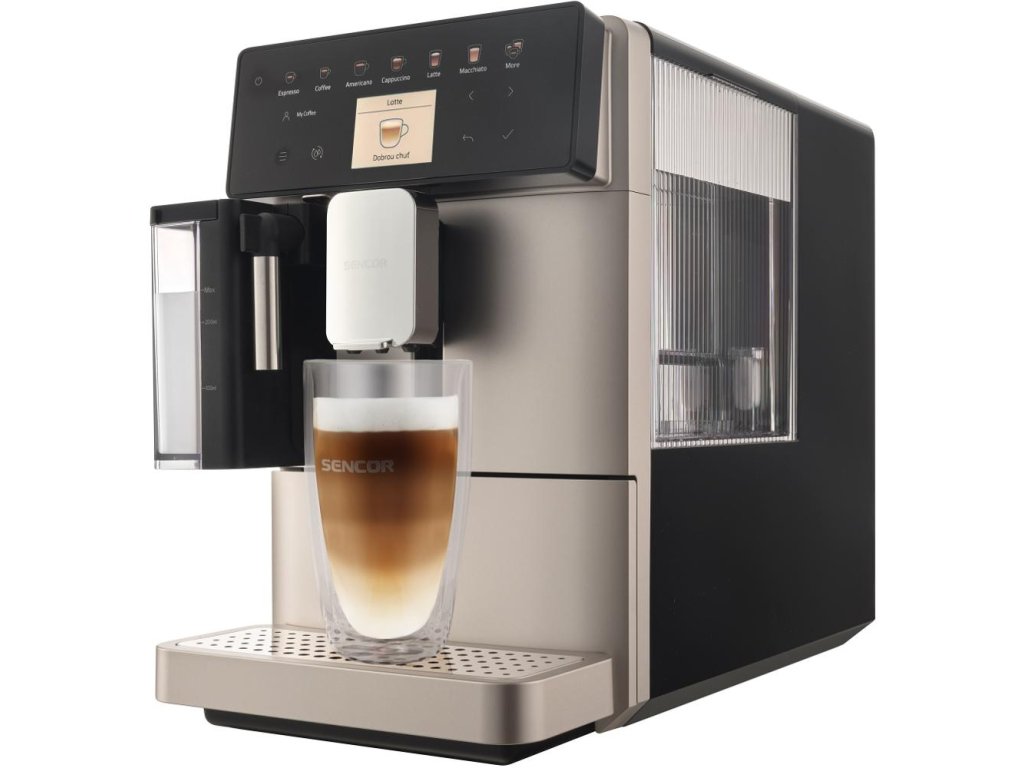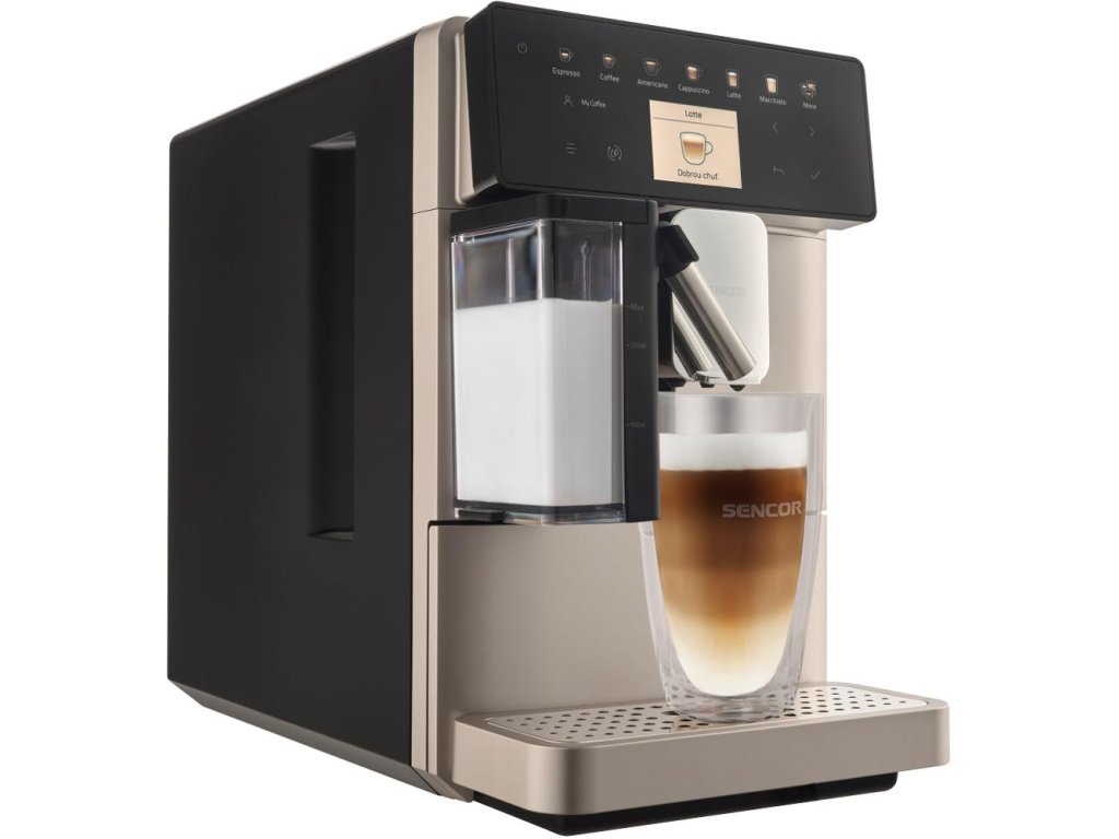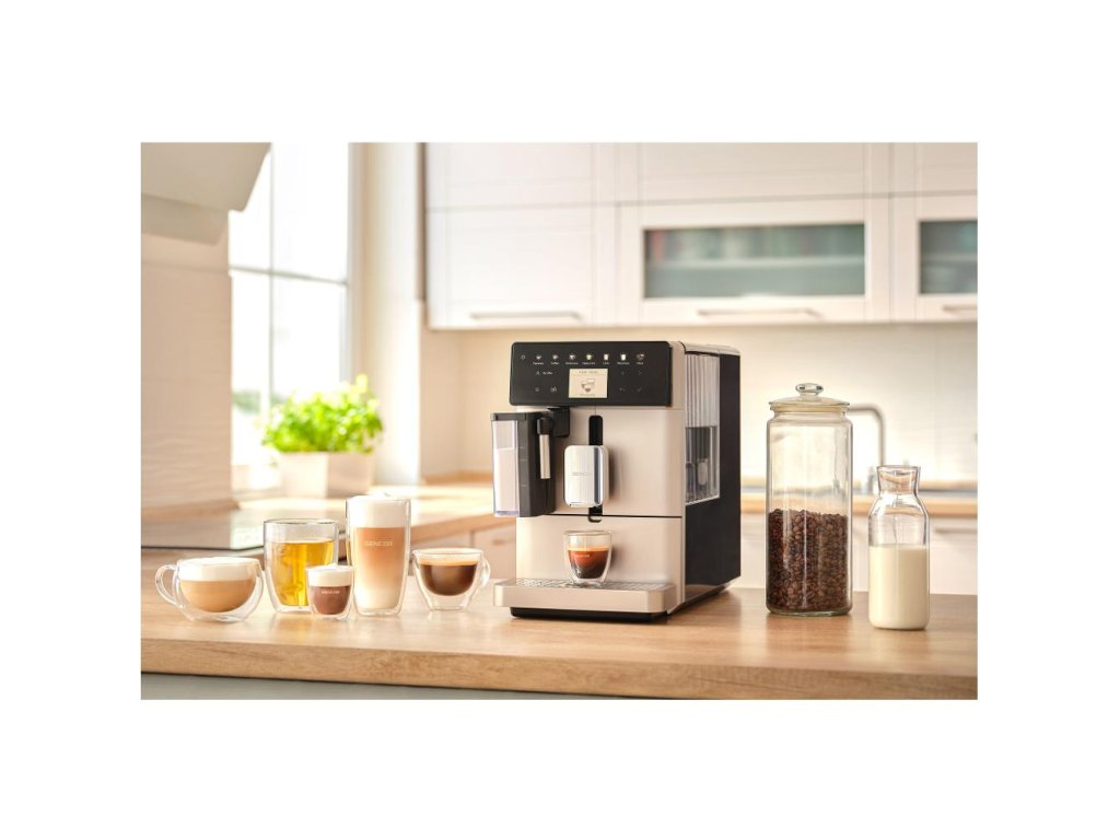 automatické espresso/cappuccino • LCD displej • nádržka na vodu 1,3l • nádoba na mléko 300ml • zásobník na kávu 200g • funkce horké vody • 9 nastavení úrovně mletí • výkon 1400W • hmotnost 9,5kg