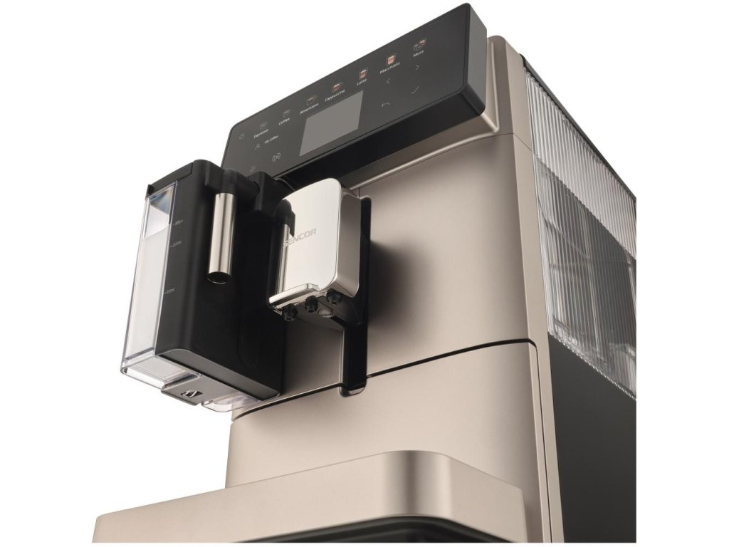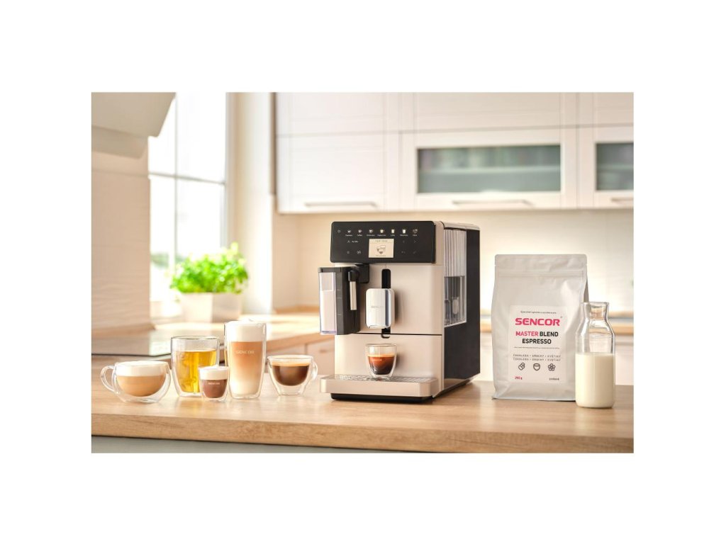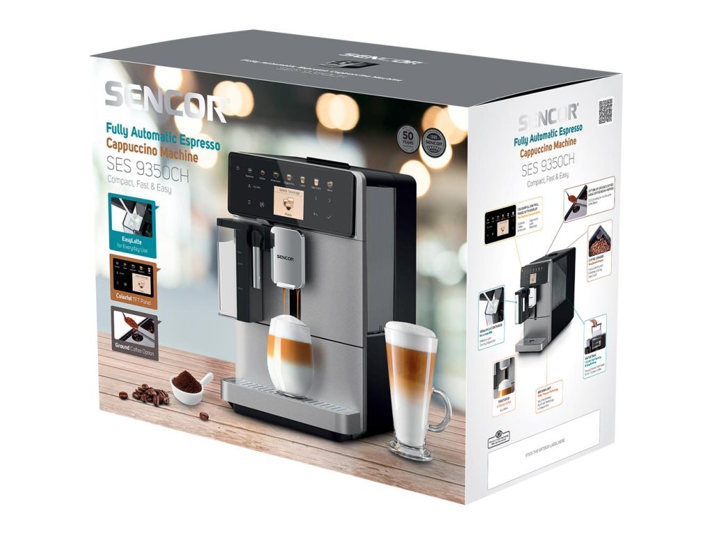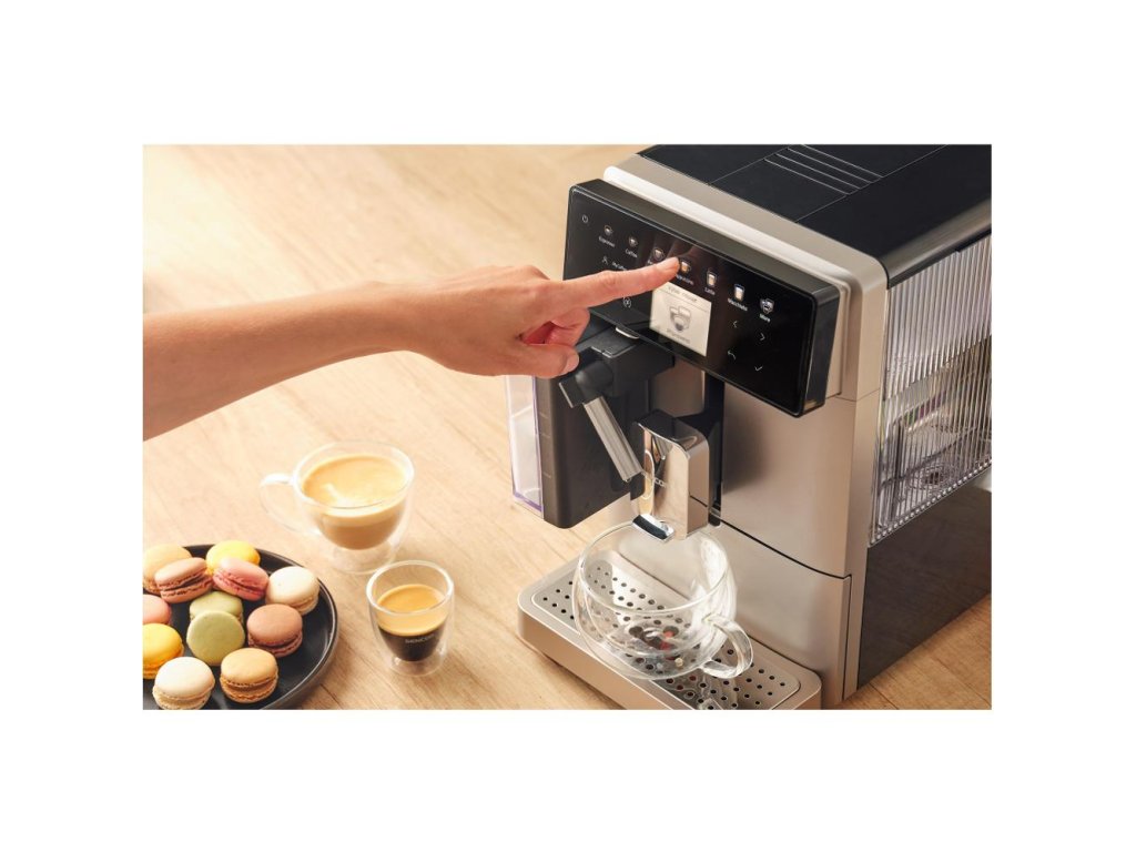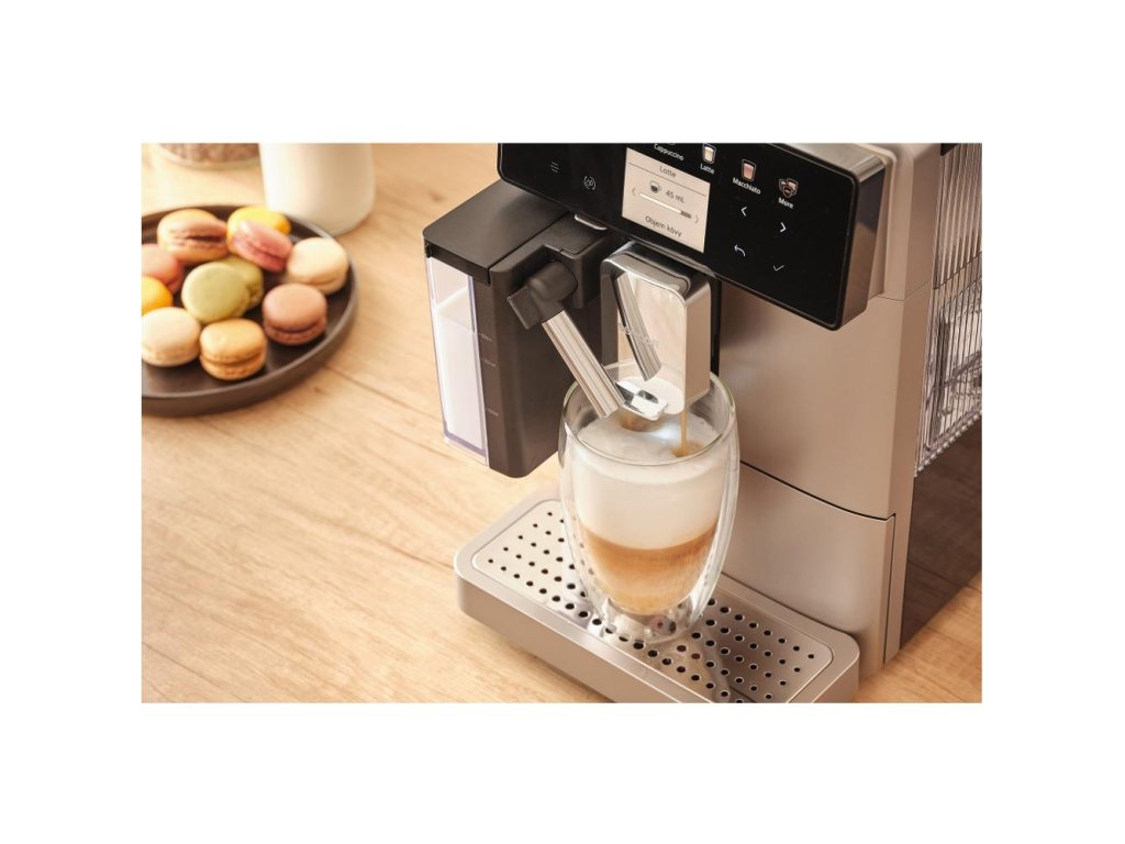 automatické espresso/cappuccino • LCD displej • nádržka na vodu 1,3l • nádoba na mléko 300ml • zásobník na kávu 200g • funkce horké vody • 9 nastavení úrovně mletí • výkon 1400W • hmotnost 9,5kg