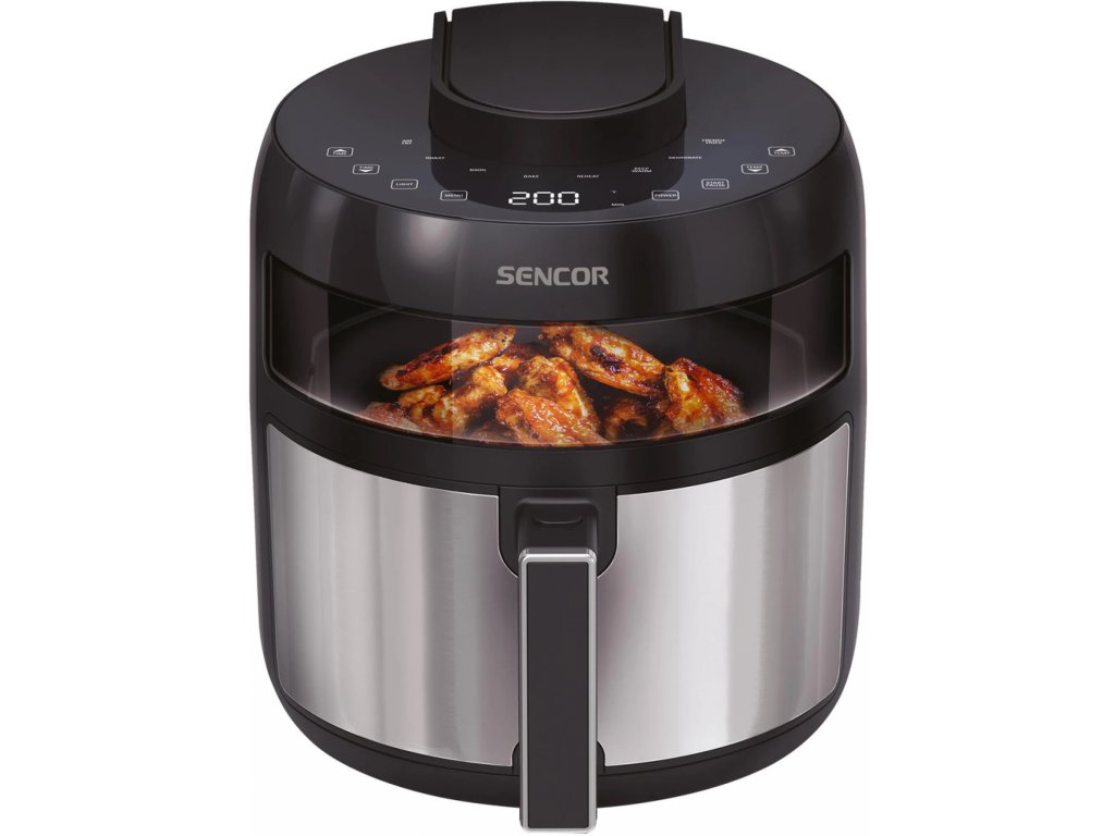 horkovzdušná fritéza • příkon 1 500 W • objem 5 l • 8 programů • rychlé nahřátí • nastavení teploty mezi 80–200 °C • nepřilnavý povrch nádoby • LED displej • časovač • hmotnost 4,25 kg