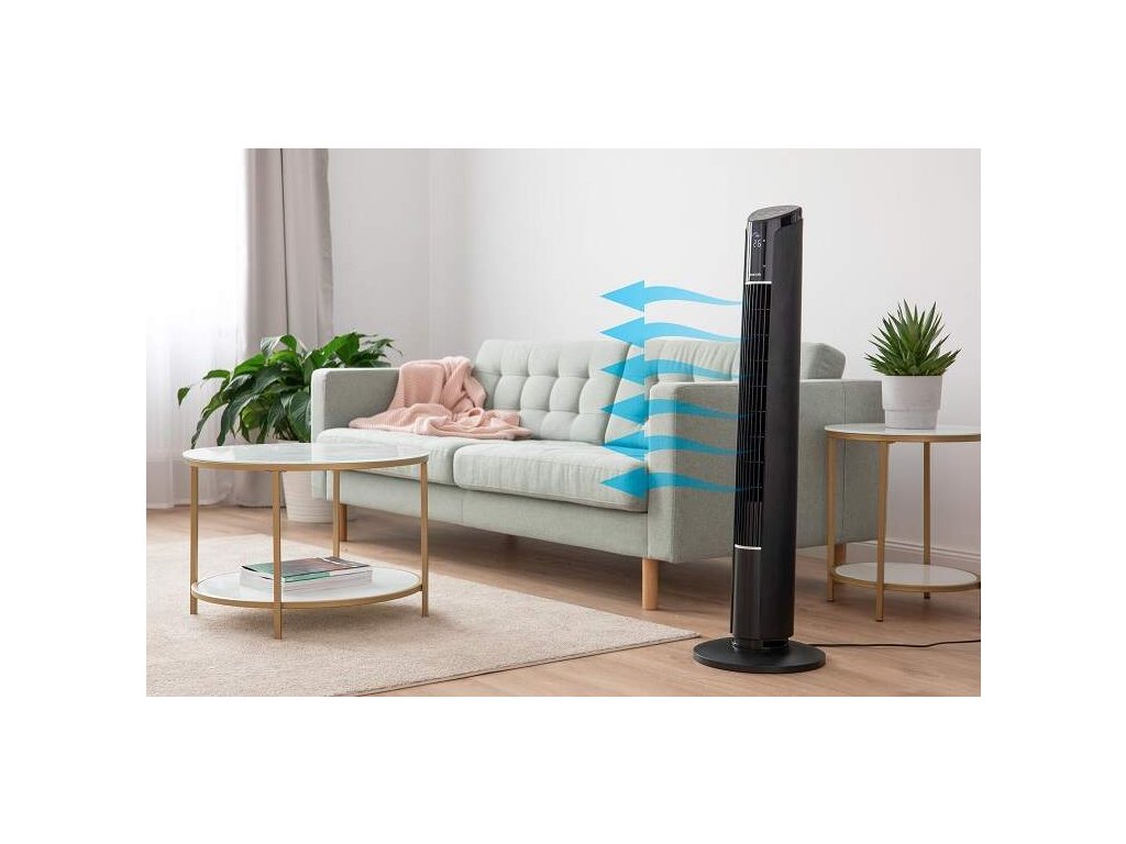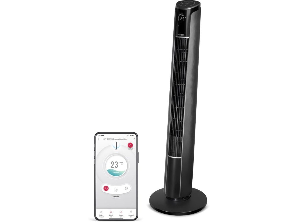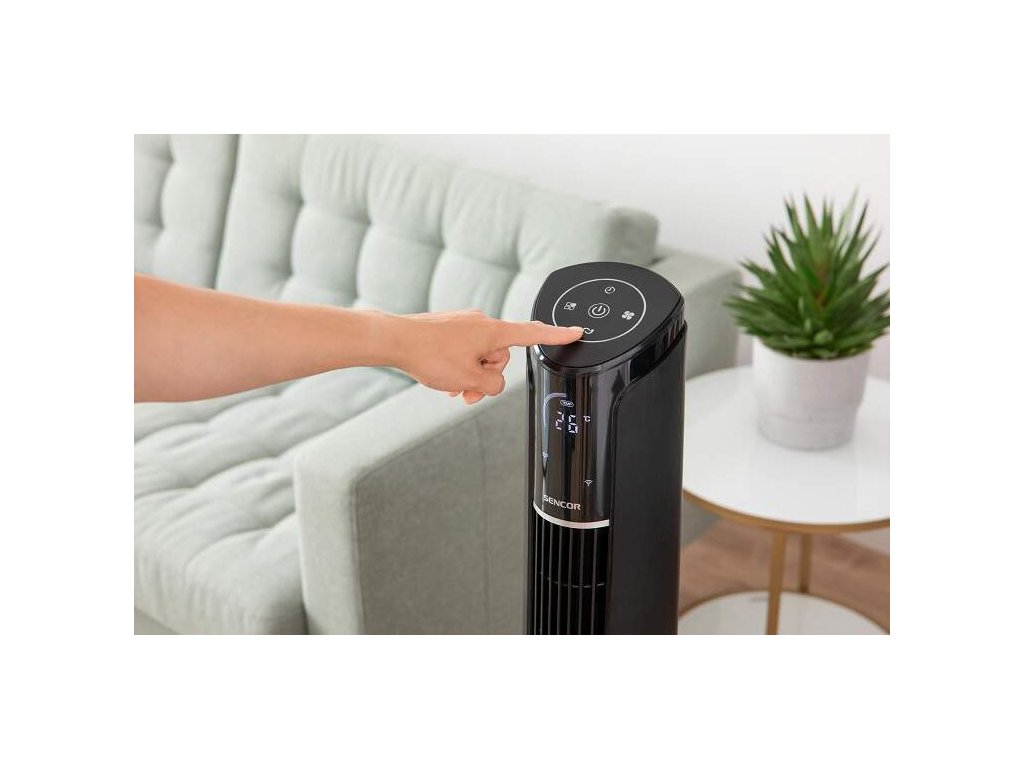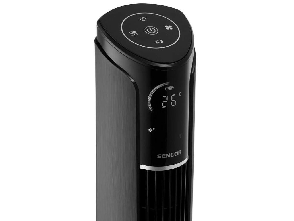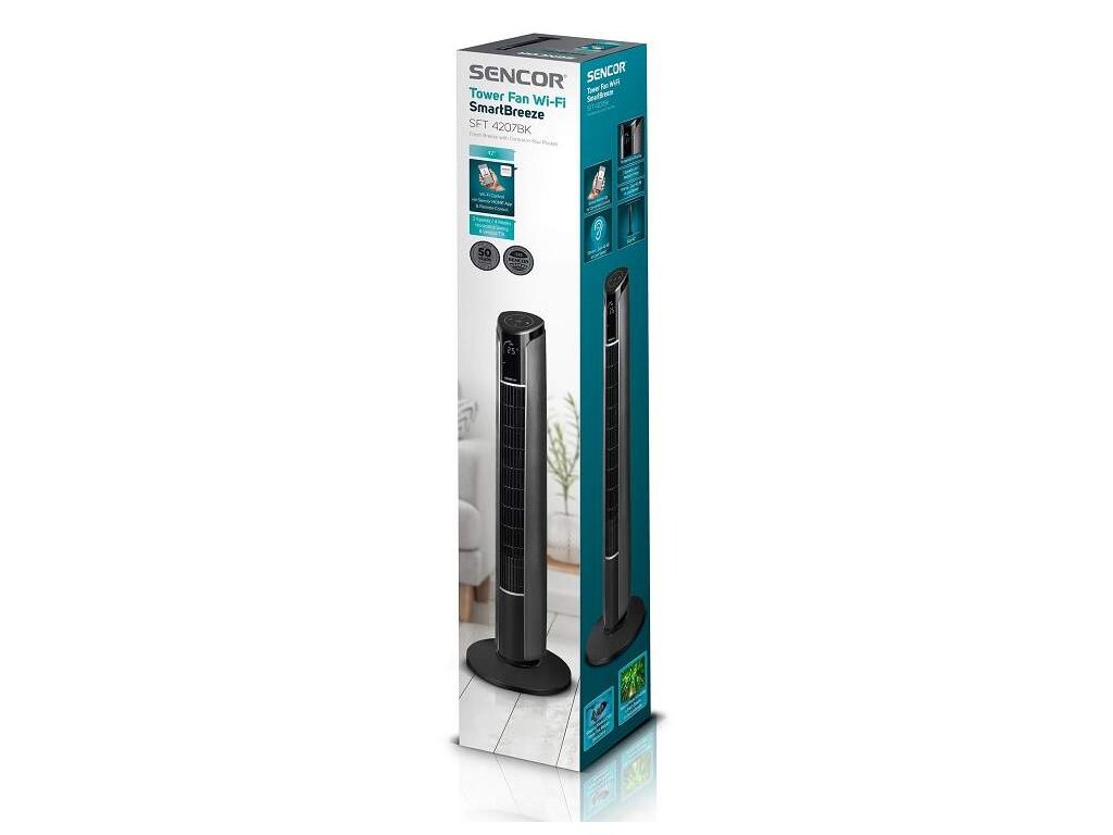 Vysoce výkonný ventilátor Sencor SFT 4207BK je elegantním pomocníkem do každého prostředí. Je tichý, neruší vás během svého provozu, a navíc se designově hodí do každého prostoru. Je nenápadný a nezabírá mnoho místa oproti klasickým ventilátorům. Nejen v parných letních dnech vám přinese příjemné osvěžení. Disponuje mnoha funkcemi, 3 stupni rychlosti a 4 přednastavenými programy. Velkou výhodou tohoto ventilátoru je možnost nastavení, horizontální oscilace a také vertikální náklon ve dvou stupních. Můžete jej ovládat pomocí dotykového ovládacího panelu, který je pohodlně dostupný v horní části ventilátoru. Další možností je využít dálkový ovladač a poslední možností, velmi zajímavou a praktickou, je ovládání pomocí Wi-Fi a chytrého telefonu s aplikací Sencor HOME. LED displej je příjemně podsvícen bílou barvou a ukazuje teplotu v místnosti. Lze jej také během užívání vypnout.