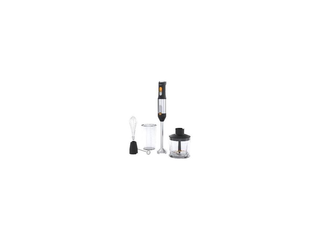 ponorný mixér • příkon 1200 W • záruka 10 let • tyč kompletně z nerezové oceli s délkou 20 cm • průběžná regulace otáček • příslušenství z nerezové oceli, které může mixovat také horké potraviny • sekací nůž z nerezové oceli
