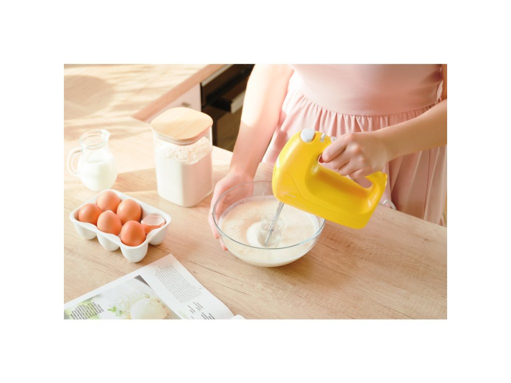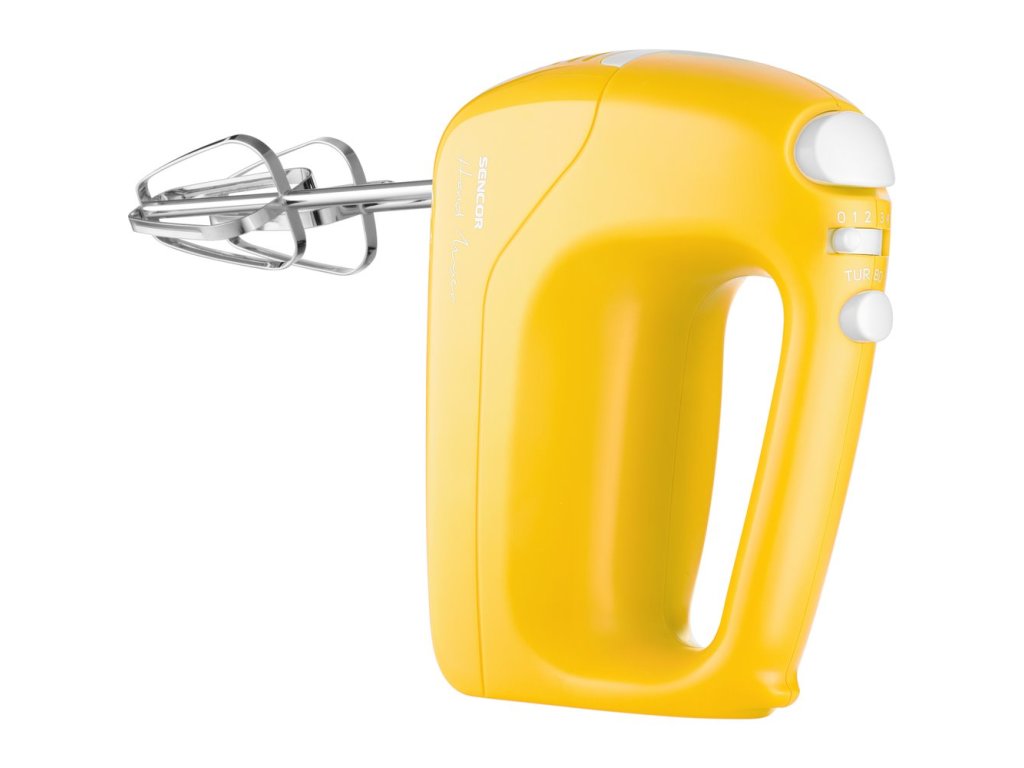 ruční šlehač • příkon 200 W • 5 rychlostí • sada šlehacích metel • sada hnětacích háků • ergonomická rukojeť s pryžovým povrchem • tepelná pojistka proti přehřátí