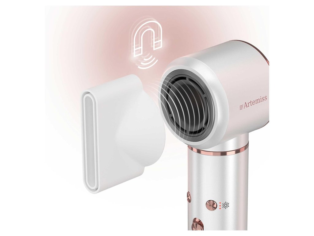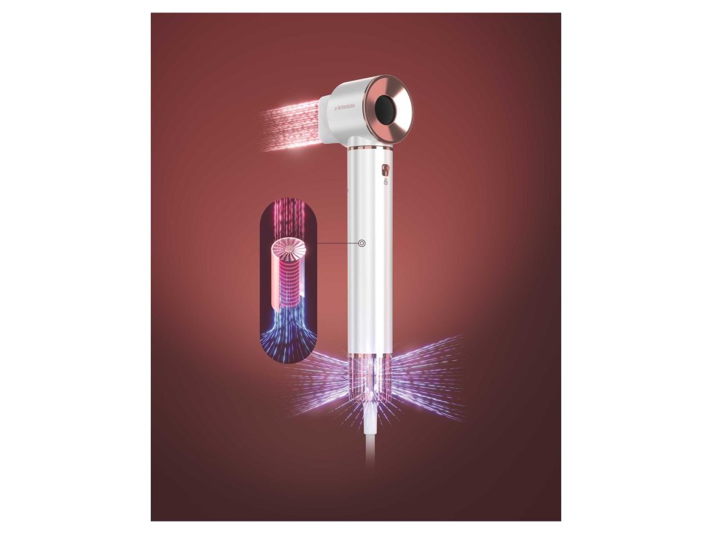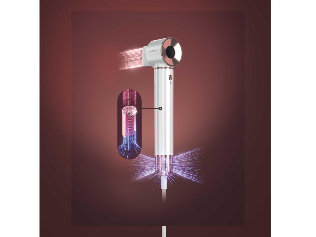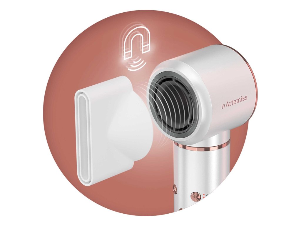 Artemiss nabízí 3 nastavení rychlosti proudění vzduchu – nízkou, střední a vysokou – které si navolíte zmačknutím levého tlačítka. Naopak tlačítkem vpravo nastavíte 1 ze 4 teplot od rychlého vysoušení a stylingu, běžného vysoušení a šetrného vysoušení až po stálý proud chladného vzduchu. Kombinací vysoké teploty a rychlosti proudění budou vaše vlasy vysušené během chvilky.