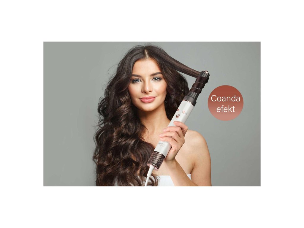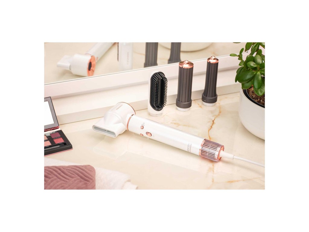 Jednou máte náladu na vlny a podruhé zas na rovné vlasy? Díky 5 nástavcům si můžete vybrat styling podle nálady a příležitosti. Hlavice pro vysoušení vlasů včetně magnetického nástavce dokonale vysuší a srovná jednotlivé pramínky. Designový kartáč zajistí větší objem a dva nástavce pro tvorbu lokem je vytvoří v různých rozměrech díky Coandova efektu.