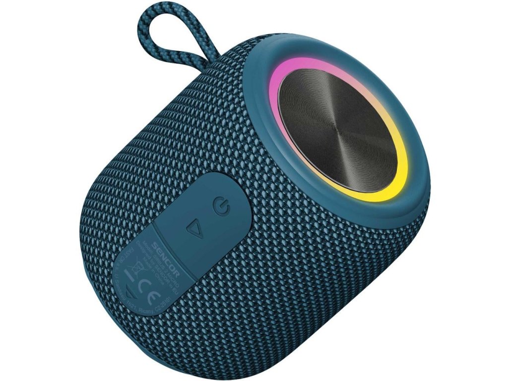 voděodolný reproduktor se stupněm krytí IPX7 • funkce TWS • LED osvětlení • Bluetooth Audio 5.0 • vestavěná dobíjecí baterie: 1200 mAh Li-Ion • doba přehrávání až 10 h (při 50% hlasitosti) • nabíjení z USB-C
