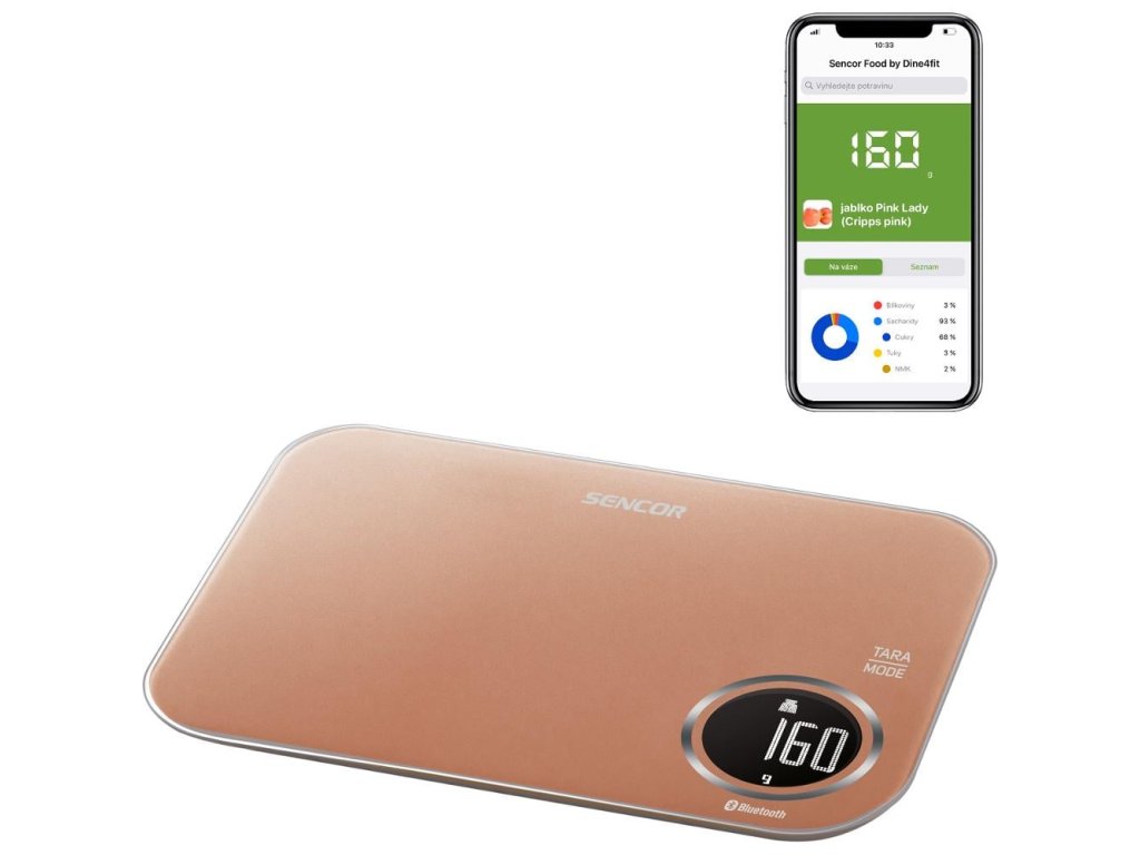 Aplikace Sencor FOOD byla vyvinuta ve spolupráci s tvůrci aplikace Kalorické tabulky / Dine4Fit a je určena pro chytré telefony s operačním systémem iOS (verze 13 a vyšší) nebo Android (verze 5 a vyšší). Při používání aplikace musí být telefon připojen k internetu.