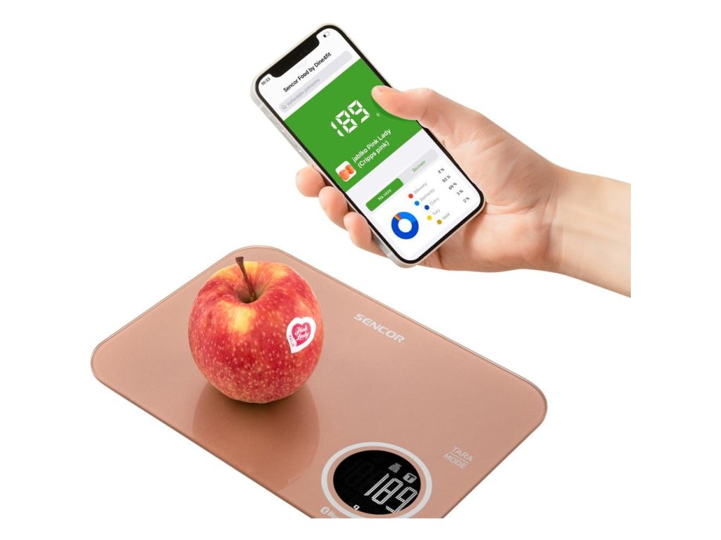 Váha je vybavena bezdrátovou technologií Bluetooth, která ve spojení s bezplatnou aplikací Sencor FOOD nainstalovanou do vašeho chytrého zařízení nabízí přímý přístup k bohaté a pravidelně aktualizované databázi potravin a jejich nutričním hodnotám.