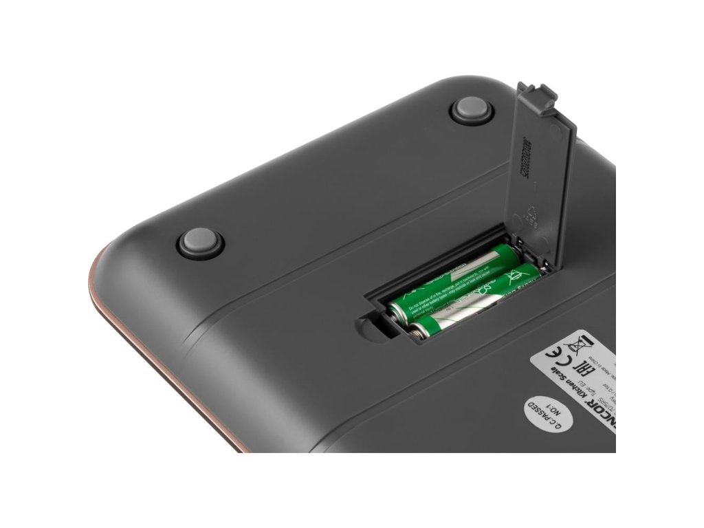 - Možnost přepínání mezi metrickými (gramy a mililitry) a imperiálními jednotkami (lb:oz / fl’oz)