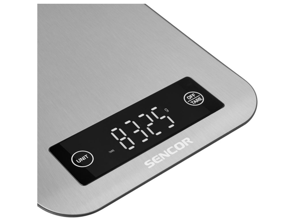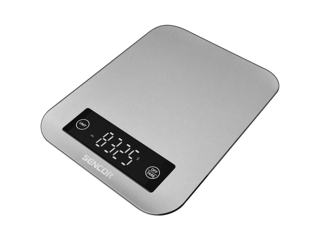 digitální kuchyňská váha • vysoce přesné tenzometrické snímače • váživost do 10 kg • funkce Tare pro dovažování ingrediencí • automatické vynulování/vypnutí • ukazatel slabé baterie a přetížení