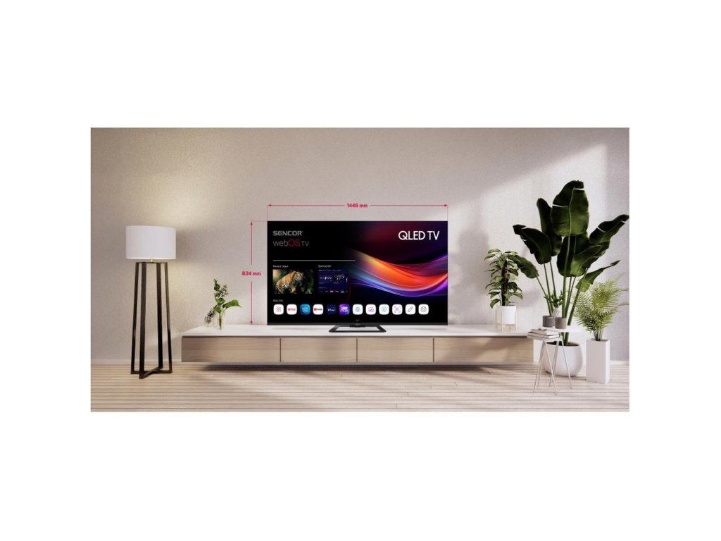 QLED SMART televize, 65"(164cm), OS webOS, rozlišení 4K UHD (3840x2160 px), DVB-T2/C/S2, H.265/HEVC, HDR10, podsvícení Direct LED, HBO MAX, Disney+, Netflix, Apple TV, 3x HDMI, 2x USB, BT, Wifi