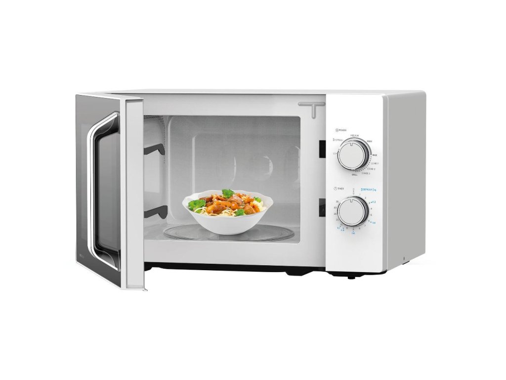 mikrovlnná trouba volně stojící • objem 20l • výkon mikrovln 700 W • akustická signalizace • funkce automatického rozmrazování • 35minutový časovač • 5 úrovní ohřevu • průměr otočného talíře 25,5 cm