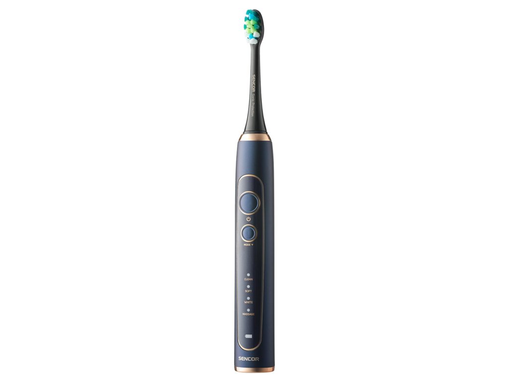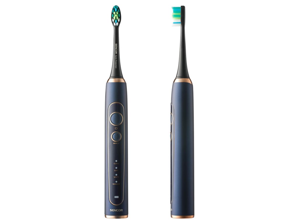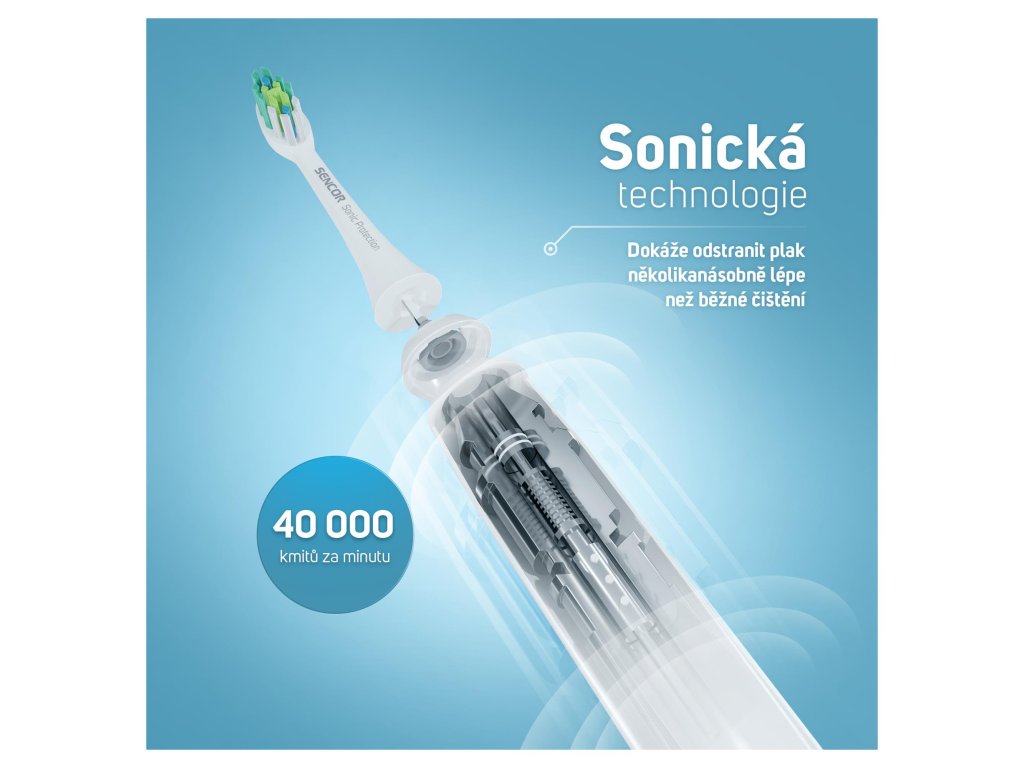 sonický kartáček • 40 000 pohybů za minutu • 4 režimy čištění • zdroj energie: akumulátor • 2minutový časovač • LED ukazatel stavu baterie • výdrž baterie až 45 dní