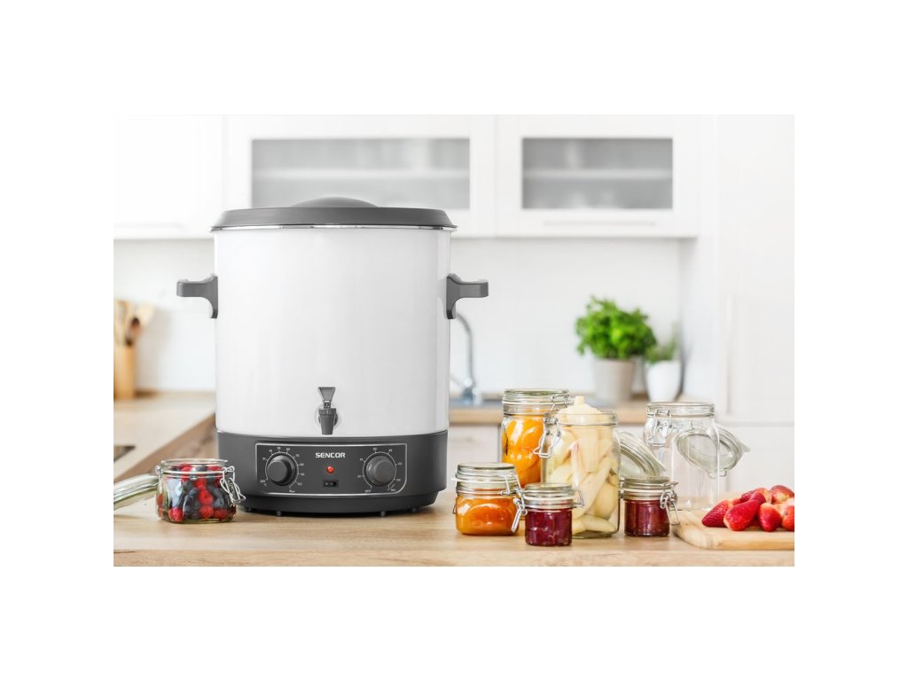 Zavařujte ovoce a zeleninu po celý rok. Společnost Sencor vytvořila zavařovací hrnec SPP 2100WH, který svým objemem 27 litrů vystačí na tvorbu až 14 litrových sklenic najednou. Marmelády, džemy, okurky a mnohé další zavařeniny proto můžete připravovat i ve velkém množství, abyste měli velké zásoby po celý rok a mohli jídlo porozdávat i rodině. Kromě samotného zavařování přístroj poslouží také k přípravě nápojů, polévek nebo omáček. Má vestavěný výtokový kohout pro snadné nalévání, abyste si mohli např. zahřát krev horkým grogem během ledových zimních večerů.