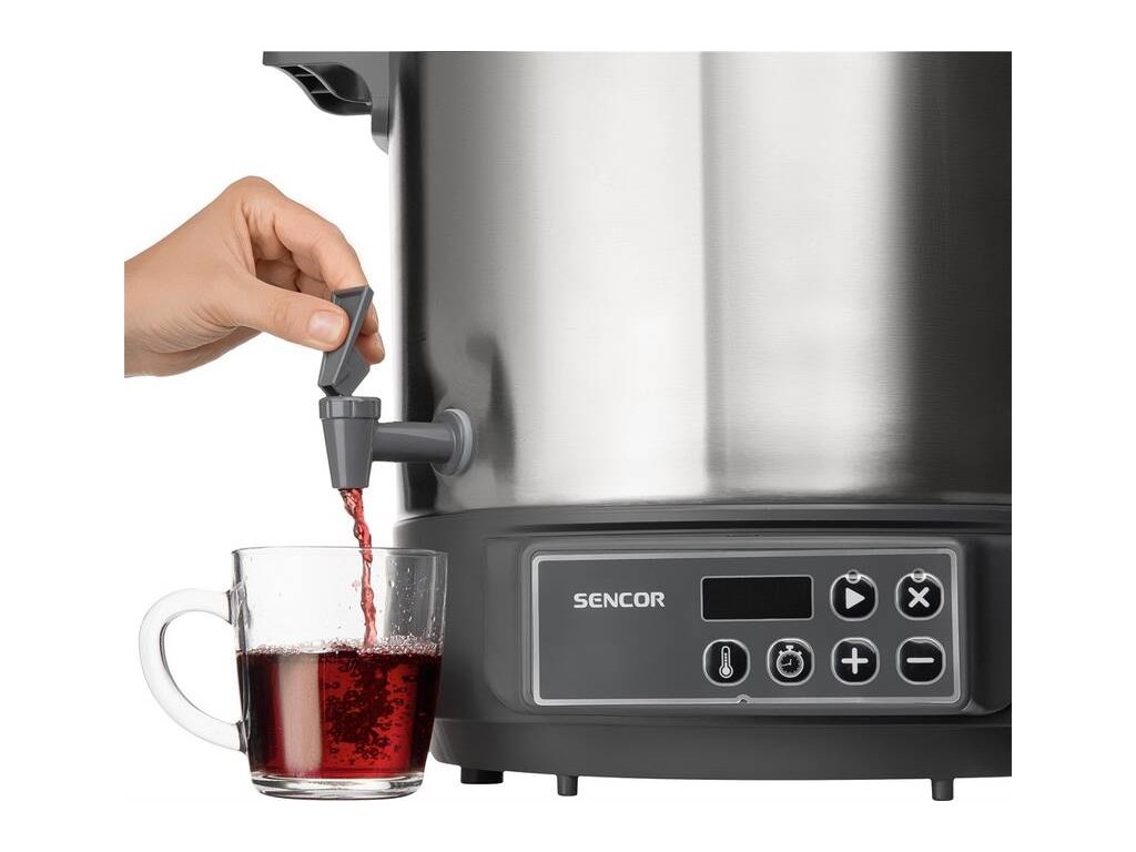 Vestavěný výtokový kohout vhodný pro stáčení např. svařeného vína, čaje, punče nebo jiných horkých nápojů
