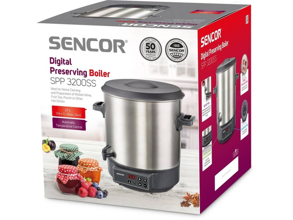 Hrnec Sencor SPP 3200SS s příkonem 1 800 W je vyrobený z hygienické nerezové oceli, která je velmi nenáročná na údržbu. Aby hrnec stále vypadal a voněl jako ten právě zakoupený, po každém použití ho stačí jednoduše umýt. Pod nerezovým dnem je ukrytá výkonná topná spirála. K dispozici jsou rovnou 2 režimy zavařování. U prvního nastavíte čas zavařování až na 12 h a zvolíte teplotu mezi 30 až 100 °C, po zapnutí se spustí odpočet. U druhého režimu nastavíte pouze teplotu, za které je následně udržován nepřetržitý provoz.