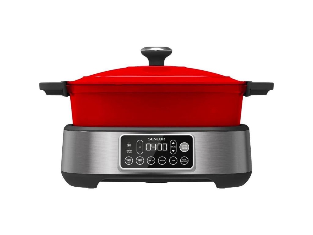 6 v 1: Sencor SPR 6410RD-CZE2 kombinuje funkce pomalého hrnce, rýžovaru, parního hrnce, smažičky, pečicí trouby a ohřívače. Jeden spotřebič vám tak nahradí hned několik kuchyňských zařízení.