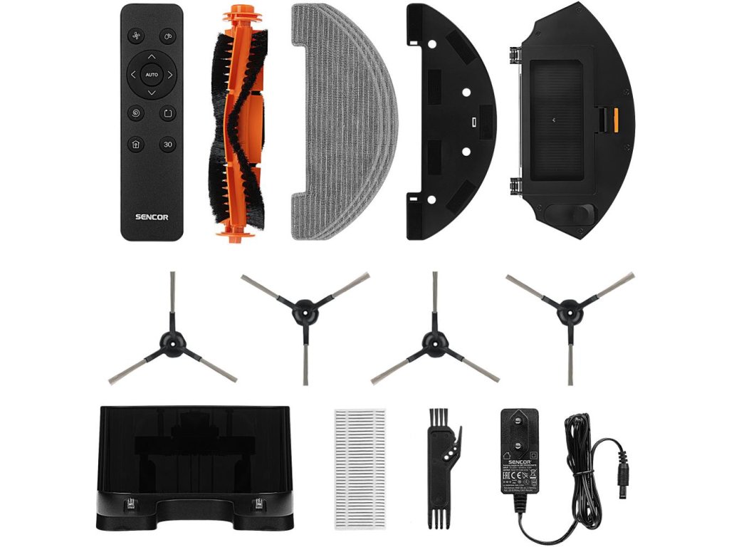 Tělo robotického vysavače včetně dvou bočních kartáčků a filtrů
