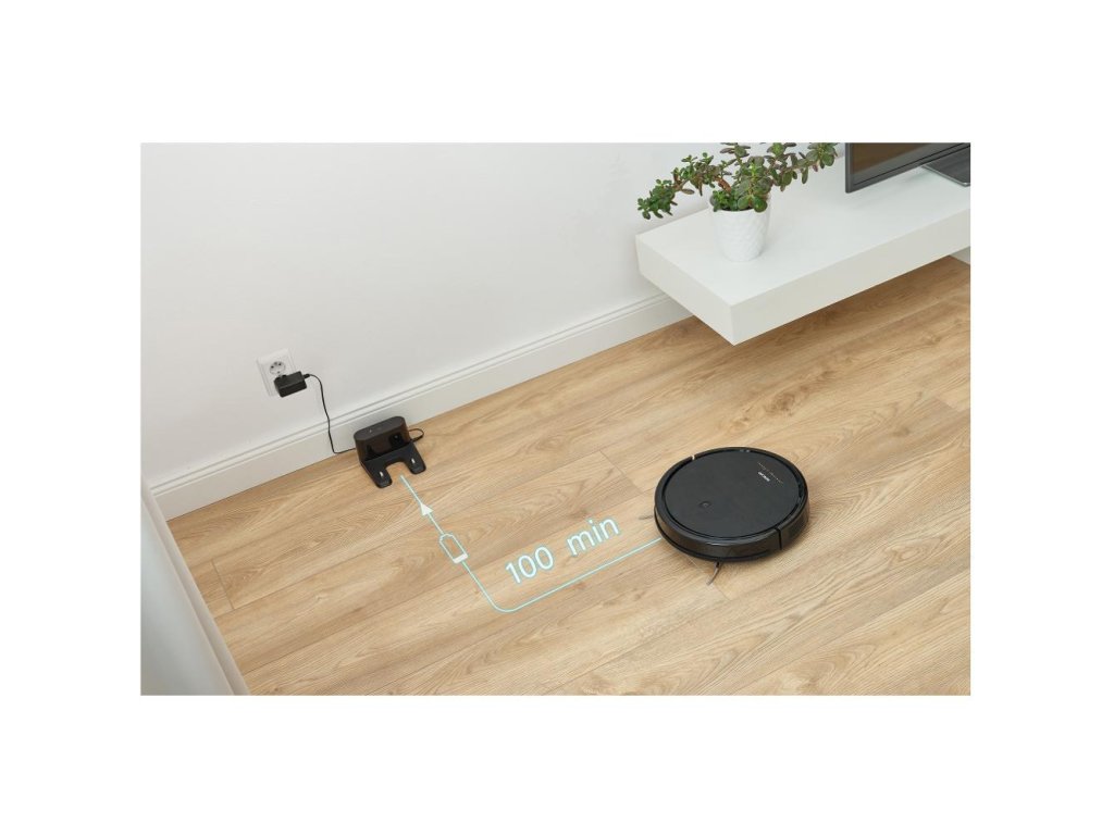 robotický vysavač • bezdrátový provoz max. 100 min • hlučnost 65 dB • na všechny typy povrchů •3 úrovně sací síly a 3 úrovně intenzity mopování • prémiová 2600 mAh Li-lon baterie
