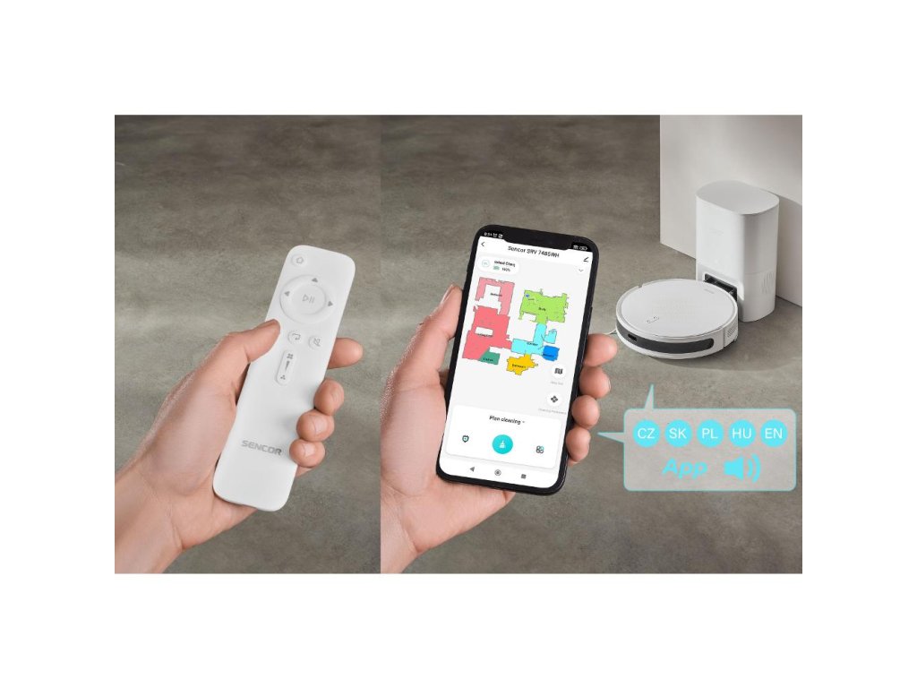 Sencor SRV 7450WH je inteligentní robotický vysavač, který zároveň mopuje a vysává. S vysoce výkonným motorem se sací sílou 5 000 Pa se můžete spolehnout na dokonalé výsledky. Li-Ion baterie s kapacitou 2 600 mAh zajistí na jedno nabití fungování až po dobu 140 minut. Přesnou orientaci v prostoru zajišťuje laserová navigace Lidar, která je integrovaná uvnitř vysavače a díky tomu je výška robota pouze 8,3 cm. Navigace umožňuje například naplánovat úklid v jednotlivých nebo nastavit zakázané zóny. K ovládání vám poslouží mobilní aplikace Sencor Home nebo dálkový ovladač. Jistě oceníte i jednoduché spárování pomocí Bluetooth.