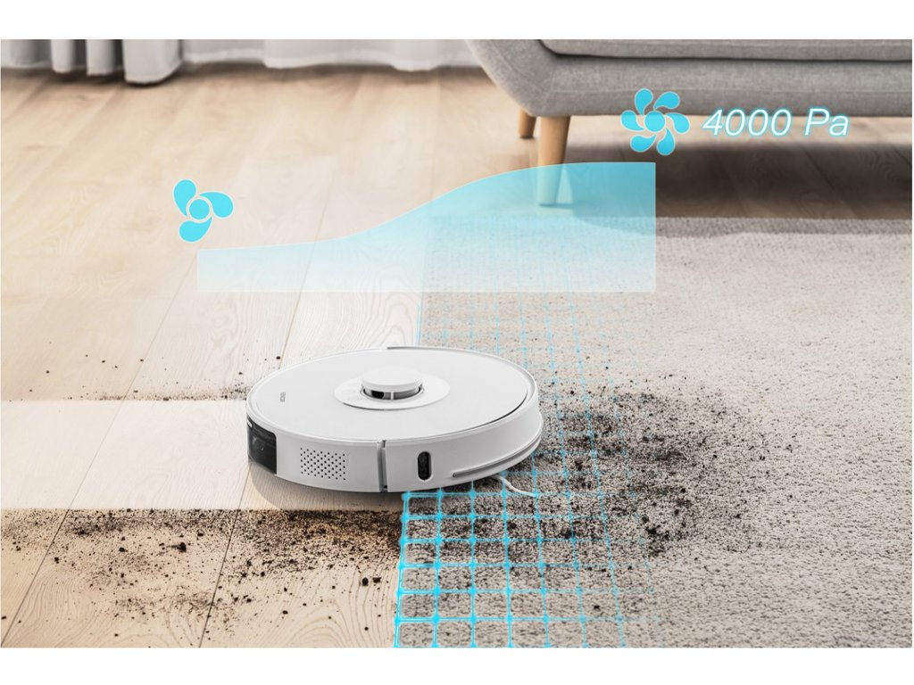robotický vysavač • sací síla 4000Pa • sběrná nádoba o objemu 3l • překoná překážky do výšky 2 cm • laserová, gyroskopická a LiDAR navigace • BLDC motor • prémiová 5000 mAh Li-lon baterie • doba provozu 200 min • doba nabíjení 5 h • hlučnost 62 dB