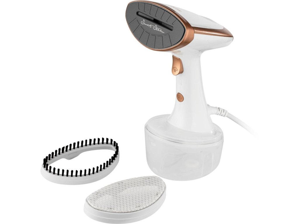 parní napařovač oděvů • příkon 1 600 W • keramická žehlicí plocha • parní výkon 25 g/min. • 2 režimy páry • 320ml nádrž na vodu • vertikální napařování • připraven k použití za 25 sekund • funkce Drip Stop – zabrání tvorbě skvrn od kapek vody na tkaninách