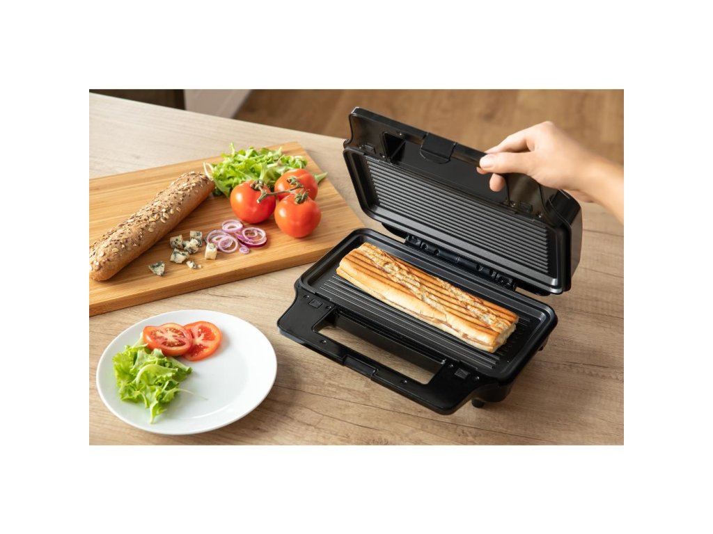 sendvičovač • příkon 900 W • 4 výměnné desky • nepřilnavá povrchová úprava • indikátor provozu a nahřátí • bezpečnostní tepelná pojistka • tepelně izolovaná rukojeť a tělo