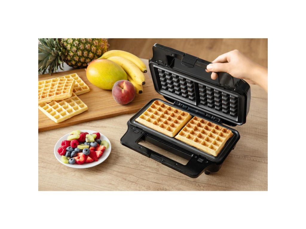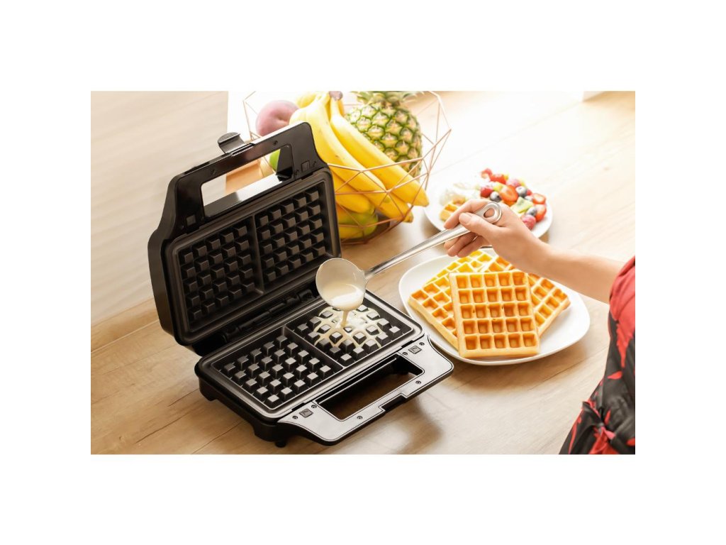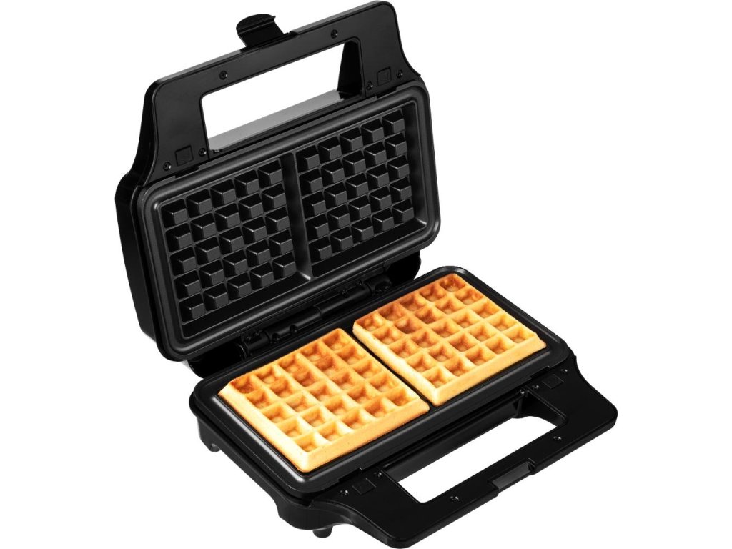 Nasaďte pečicí desku pro tvorbu vaflí a nastartuje den sladkým ránem. Výborný sladký brunch si díky sendvičovači naservírujete i doma. K tvorbě těsta budete potřebovat máslo, cukr, vejce, mouku, mléko, rum a prášek do pečiva. Pomalým nalévání do určených forem a pečením po dobu tří až pěti minut docílíte krásně nadýchaných vaflí. Přidat na ně lze džem, oříškový krém, šlehačku, kakao, ovoce. Detailní postup pro tvorbu vaflí najdete v návodu.
