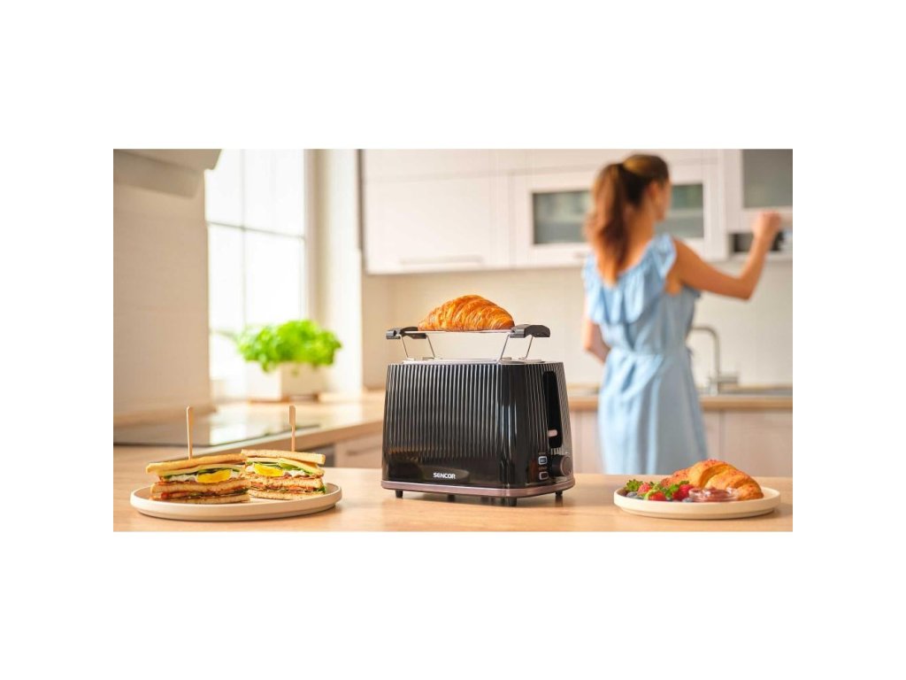 S pomocí topinkovače se 2 opékacími otvory a 7 úrovněmi intenzity opékání si snadno připravíte topinky, jak je máte rádi. Zásluhou několika funkcí pečivo ohřívá, opéká i rozmrazuje. Připraví i housky nebo bagety s pomocí rozpékací mřížky. Pro rychlé přerušení provozu disponuje funkcí okamžitého ukončení opékání.