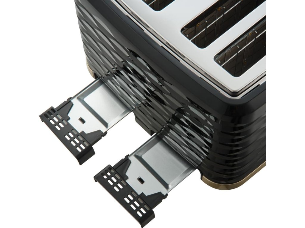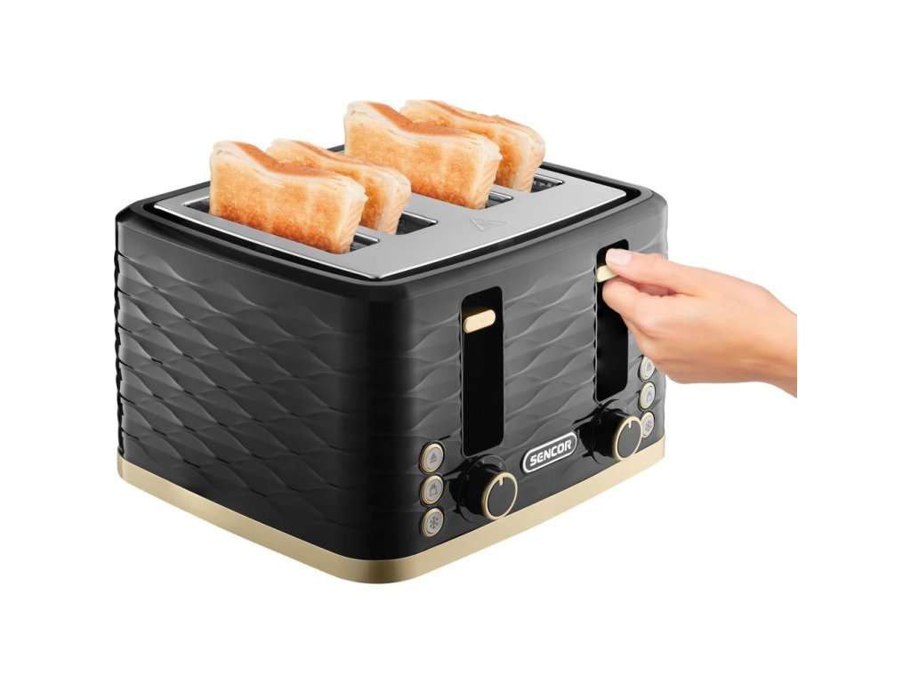 topinkovač • příkon 1600 W • 4 otvory • 7 stupňů nastavení intenzity • automatické centrování • opakovaný ohřev • rozpékání • rozmrazování • automatické vysunutí • funkce High Lift • tácek na drobky • tlačítko stop • protiskluzové nožičky