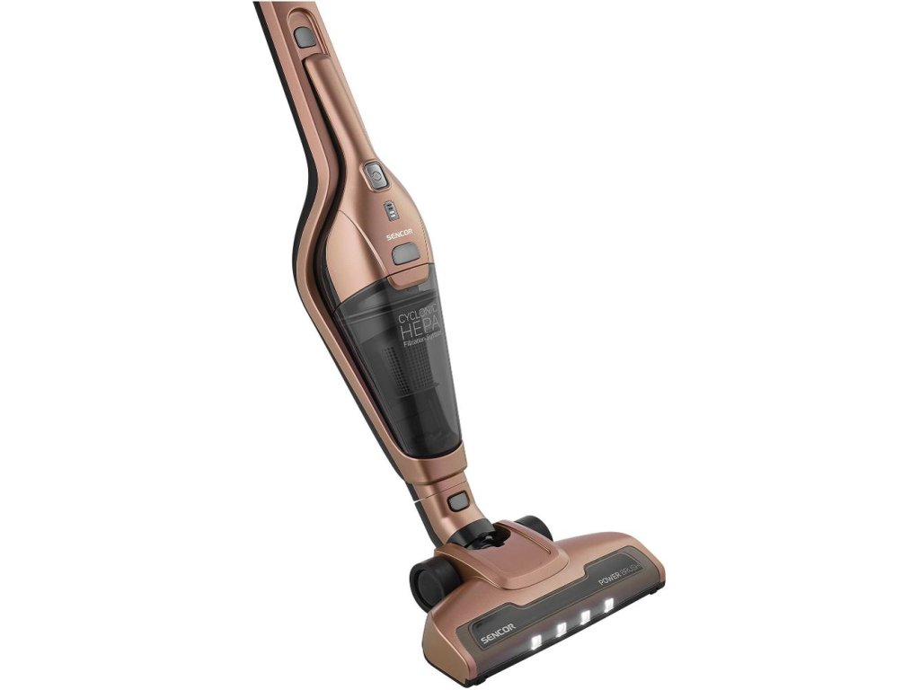 tyčový aku vysavač 3v1 • na všechny druhy podlah • Li-ion baterie, doba nabíjení 4 h • HEPA filtr • hlučnost 79 dB • objem sběrné nádoby 0,5 l • ovládání na těle • LED kontrolky stavu nabití baterie • LED osvětlení