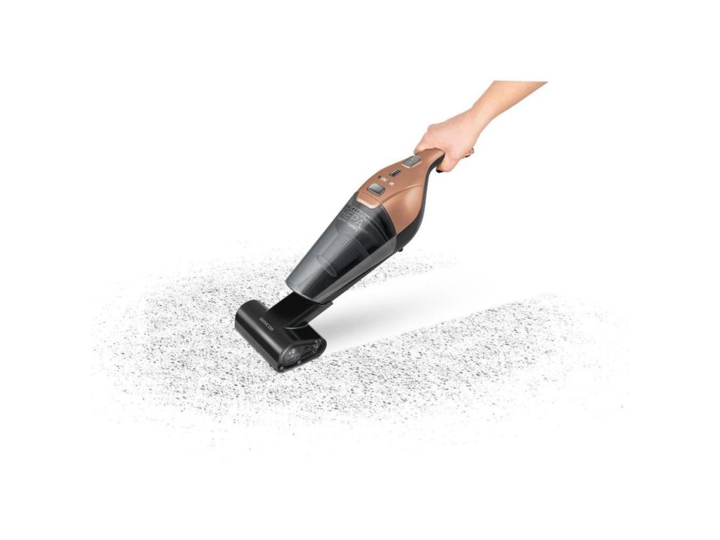 Stiskem jednoho tlačítka lze jednoduše odejmout ruční jednotku, která je spolu s výměnným příslušenstvím dokonalým pomocníkem pro čištění prachu z nábytku nebo interiéru auta.