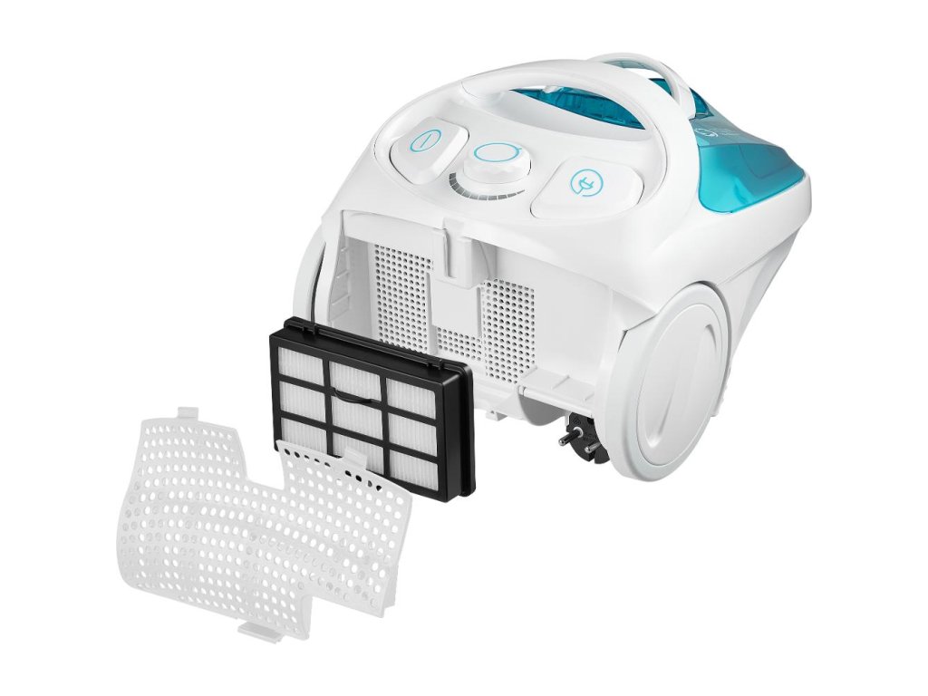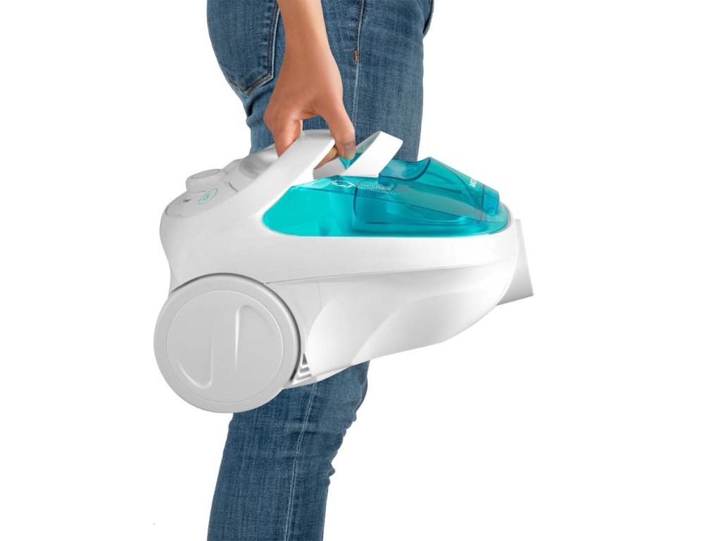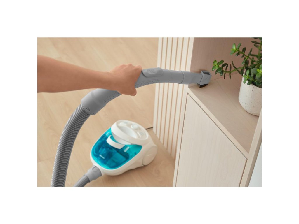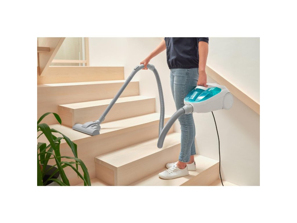 bezsáčkový vysavač • 800 W • nejvyšší třída energetické účinnosti • filtrační systém Cyclone s EPA E12 filtry • délka kabelu 5 m • objem nádoby 1,5 l • speciálně navržená gumová kolečka • tichý chod