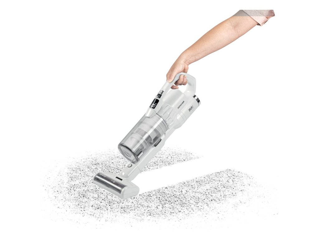 Tento tyčový vysavač 3v1 je poháněný silným digitálním 550 wattovým motorem, který zaručí excelentní výsledky úklidu. SVC 9829WH je lehký a snadno se ovládá, díky čemuž se stane vaším oblíbeným pomocníkem při každodenním úklidu jakéhokoliv povrchu i těžko dostupných míst ve výškách. Hubice s LED osvětlením snadno odhalí i nejjemnější prach a usnadní vysávání. Díky extrémně velké kapacitě baterie zvládne úklid většího domu nebo bytu na jedno nabití. Odnímatelná jednotka společně se širokou volbou příslušenství umožní rychle odstranit veškeré nečistoty a prach z nábytku, stolu nebo v autě. Když ji propojíte s motorizovaným kartáčem CAT DOG mini, snadno vysajete všechny zvířecí chlupy.