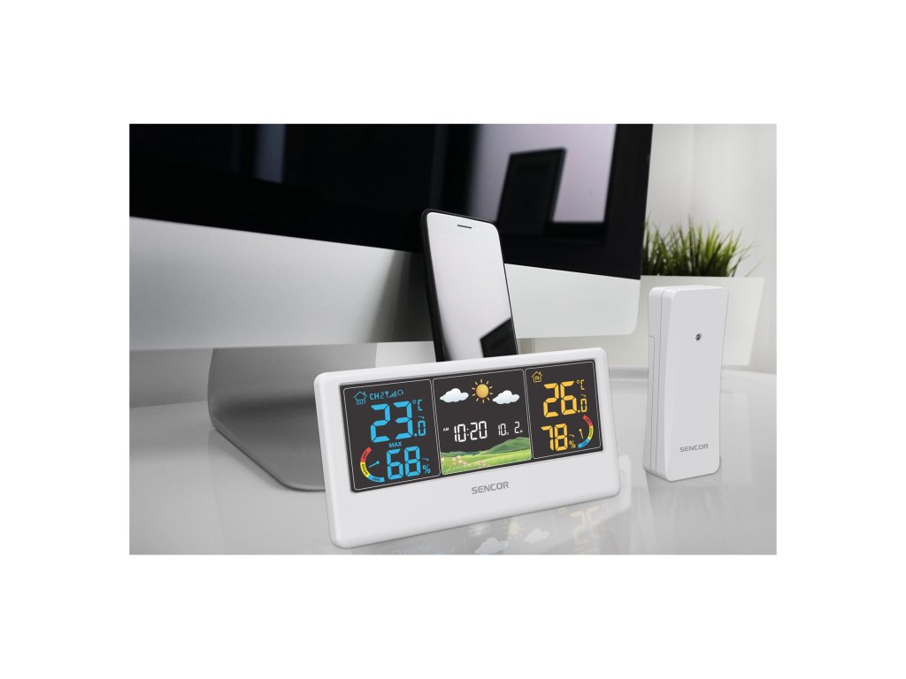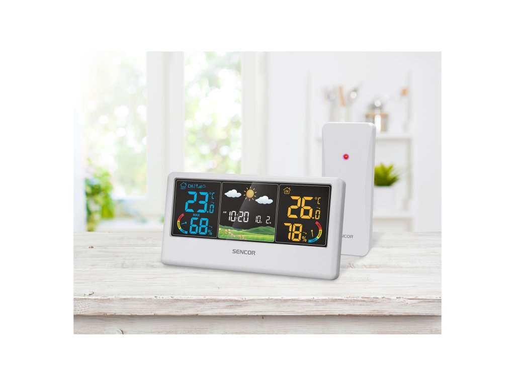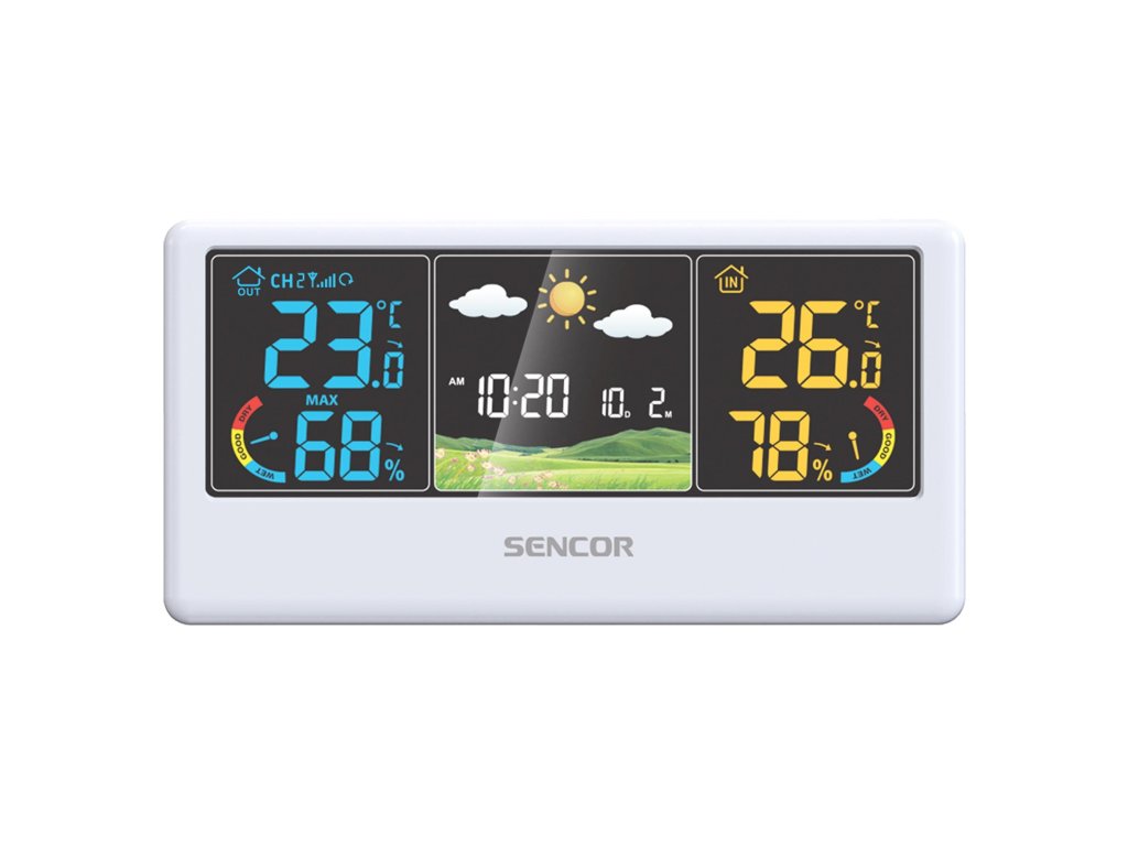 Počasí je oblíbeným tématem k hovoru, zvláště když umí pořádně překvapit. S meteorologickou stanicí SENCOR SWS 4100, která dokáže počasí předpovídat, budete připraveni na sucho, déšť i sníh. Stanice měří venkovní i vnitřní teplotu a vlhkost a díky inteligentnímu rozpoznání tlaku a teplotních výkyvů dokáže předpovídat počasí až na 24 hodin. Zdrojem dat je pro meteostanici okolí vašeho domu, takže máte po ruce vždy lokální informaci. Na barevném displeji se zobrazuje předpověď ve formě obrázku, který je snadno srozumitelný i pro nejmladší členy rodiny. Navíc je stanice schopna varovat v případě blížícího se nebezpečí, jako jsou extrémní teploty nebo hrozící námraza na vozovce.