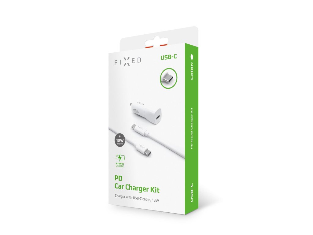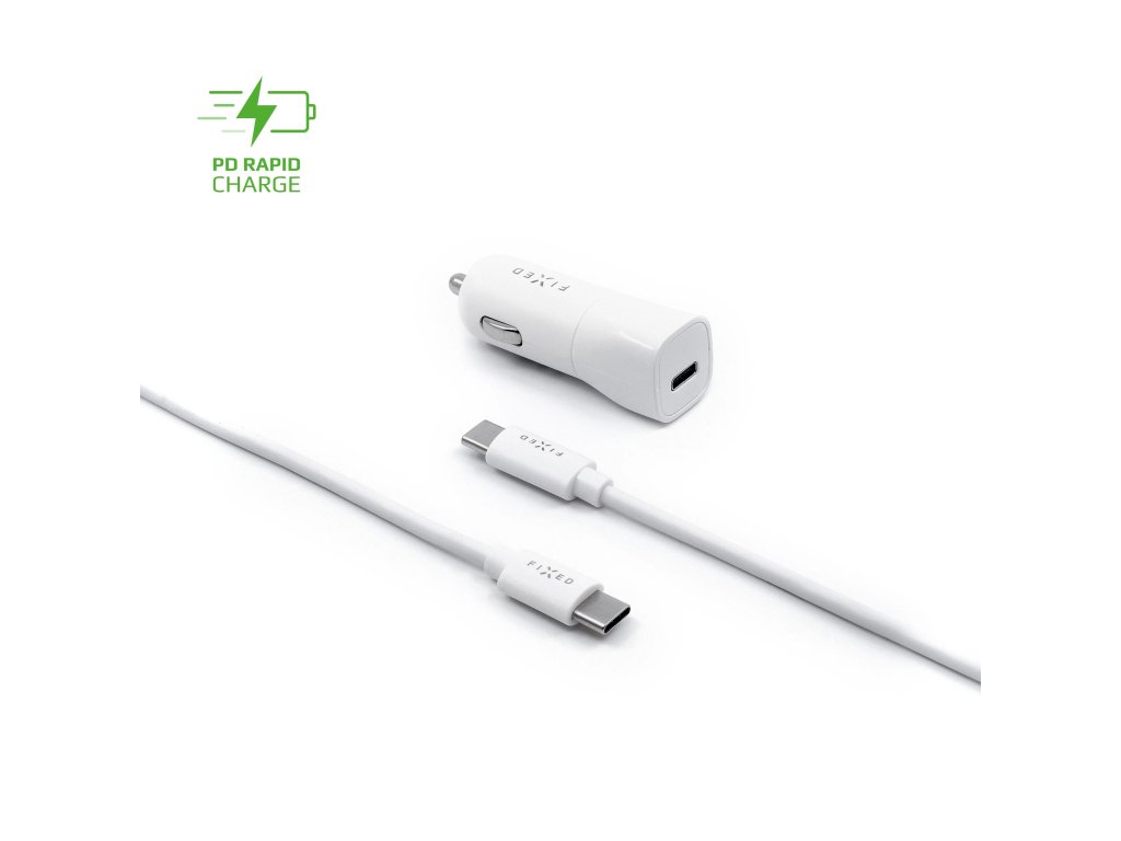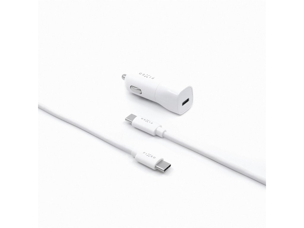 Set autonabíječky FIXED s USB-C výstupem a USB-C/USB-C kabelu, podpora PD, 1 metr, 18W, bílý