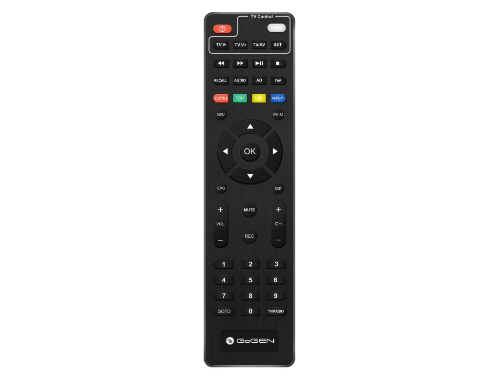 Set-top box GoGEN DVB142T2PVR funguje nejen jako přijímač pozemního digitálního vysílání, ale také jako multimediální přehrávač. Díky těmto vlastnostem se tak rychle stane nedílnou součástí Vašeho televizoru. Ten v tomto případě funguje už jen jako zobrazovací zařízení. A právě proto je součástí balení set-top boxu i programovatelný dálkový ovladač, který snadno spárujete s Vašim televizorem. Lze tak jedním ovladačem ovládat set-top box i základní funkce televizoru (zapnutí/vypnutí, hlasitost, změna zdroje).