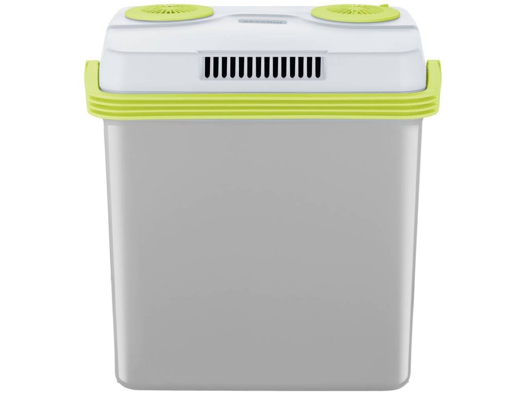 Chladí až o 20 °C pod okolní teplotu, udržuje teplé jídlo při 50 °C, síťová přípojka, kabel 12 V, 19 l, funkce ECO (16 W), držadlo, odnímatelné víko s přihrádkou, hlučnost 49 dB(A), energetická třída E , 442 x 408 x 309 mm, šedá/zelená