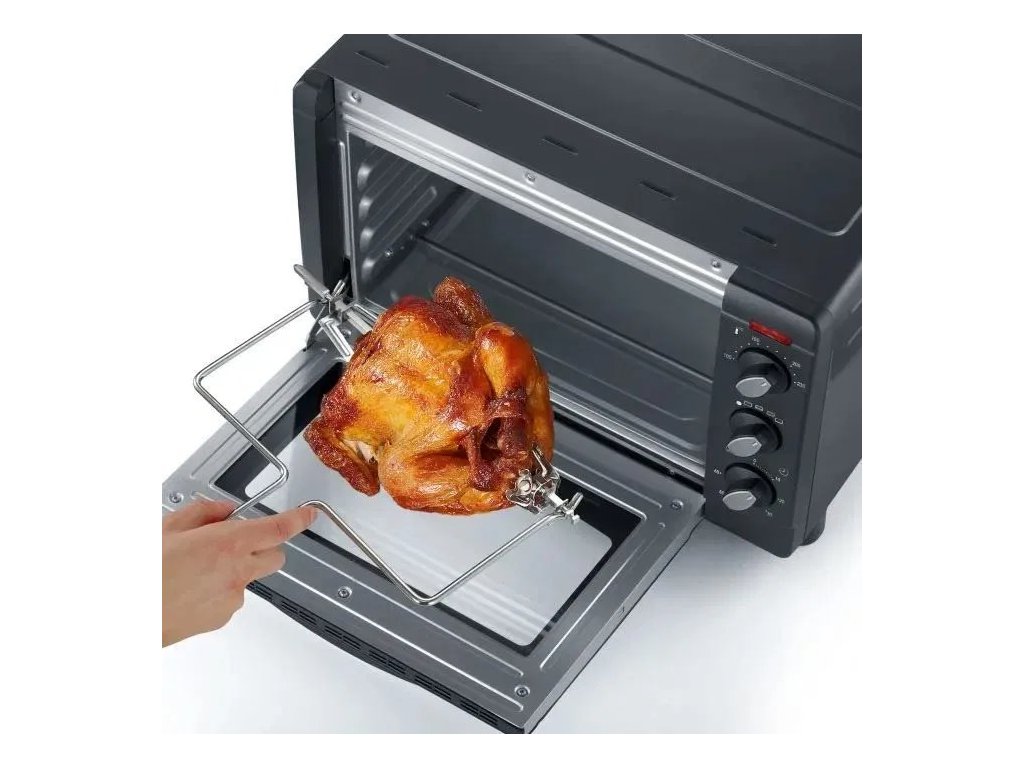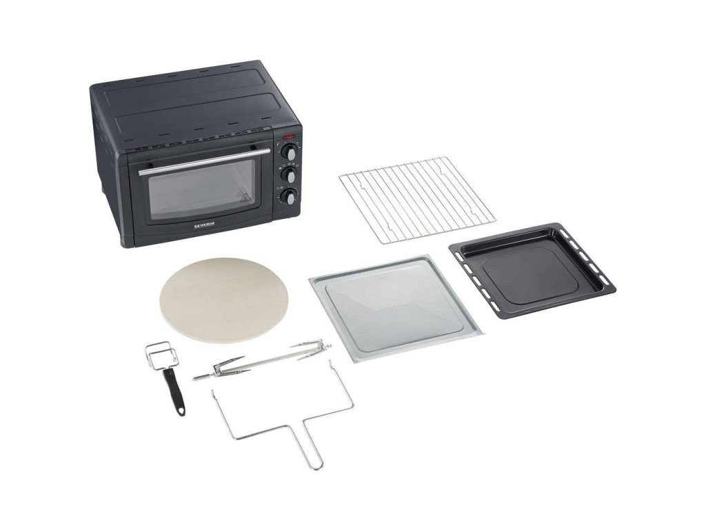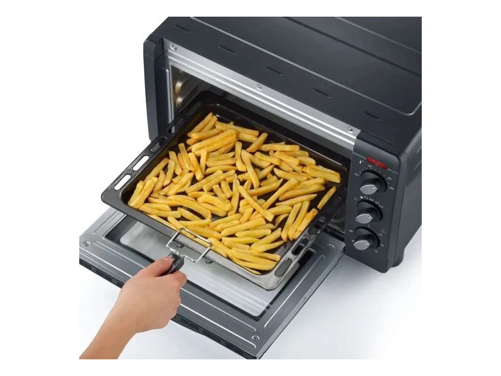 Výkon 1500 W, kapacita 20 l, 44 x 39 x 29,5 cm, tepelně izolovaný povrch, 5 voleb ohřevu, termostat 100 - 230 °C, časovač 60 minut se zvukovým signálem, rošt 31 x 30 cm, plech 31 x 28 cm, tácek na drobky, vnitřní osvětlení, černá/stříbrná