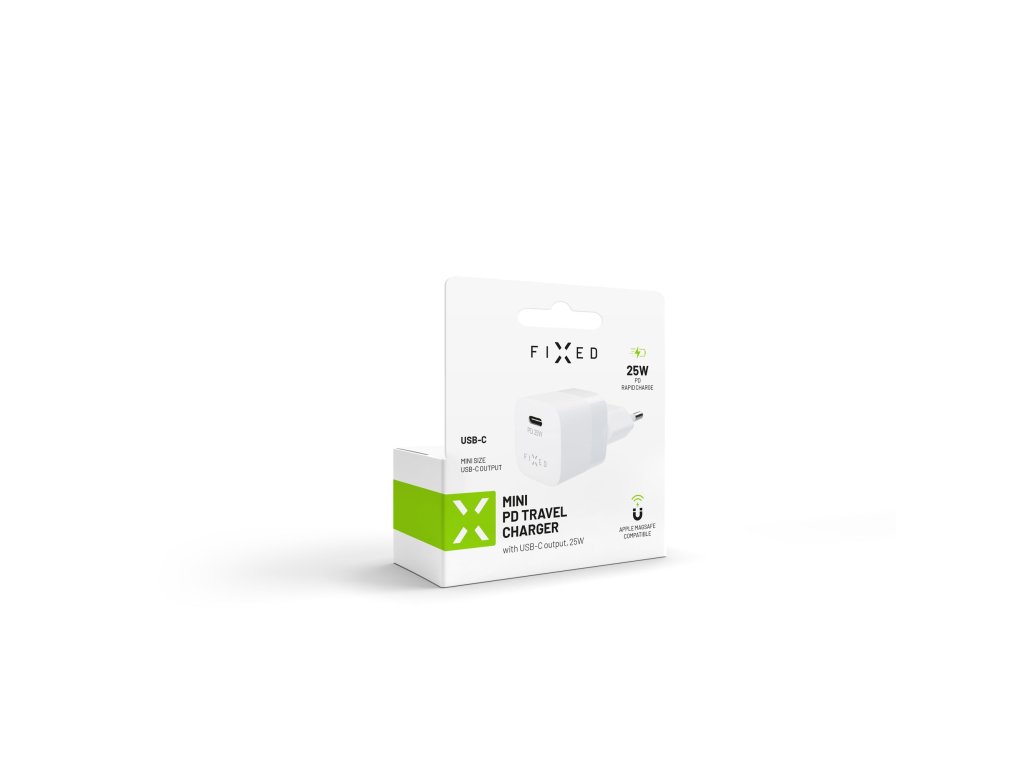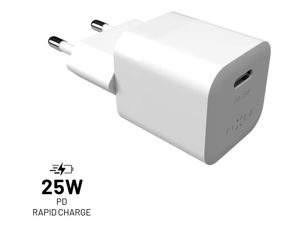 Síťová nabíječka FIXED Mini s USB-C výstupem a podporou PD, 25W, bílá