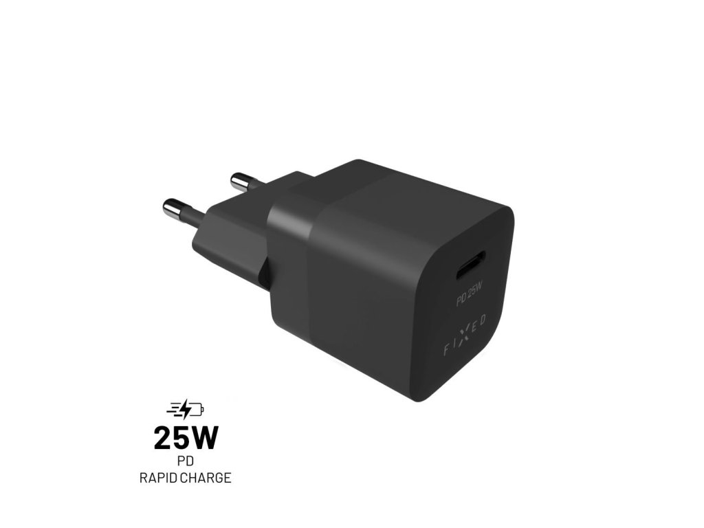 Síťová nabíječka FIXED Mini s USB-C výstupem a podporou PD, 25W, černá