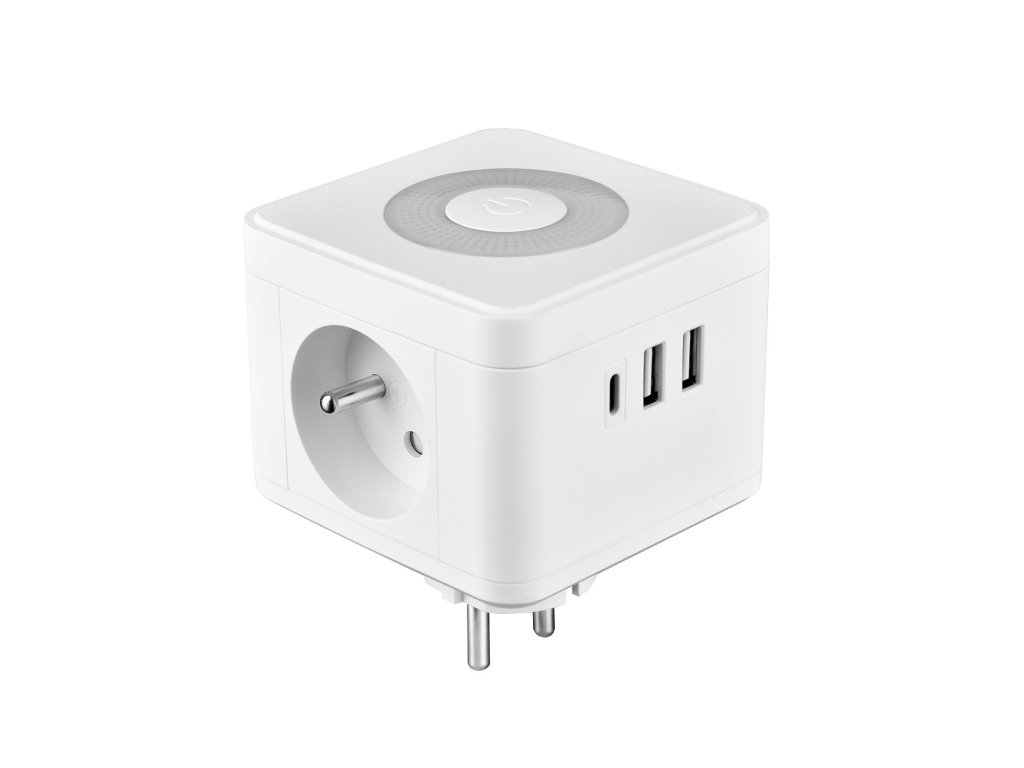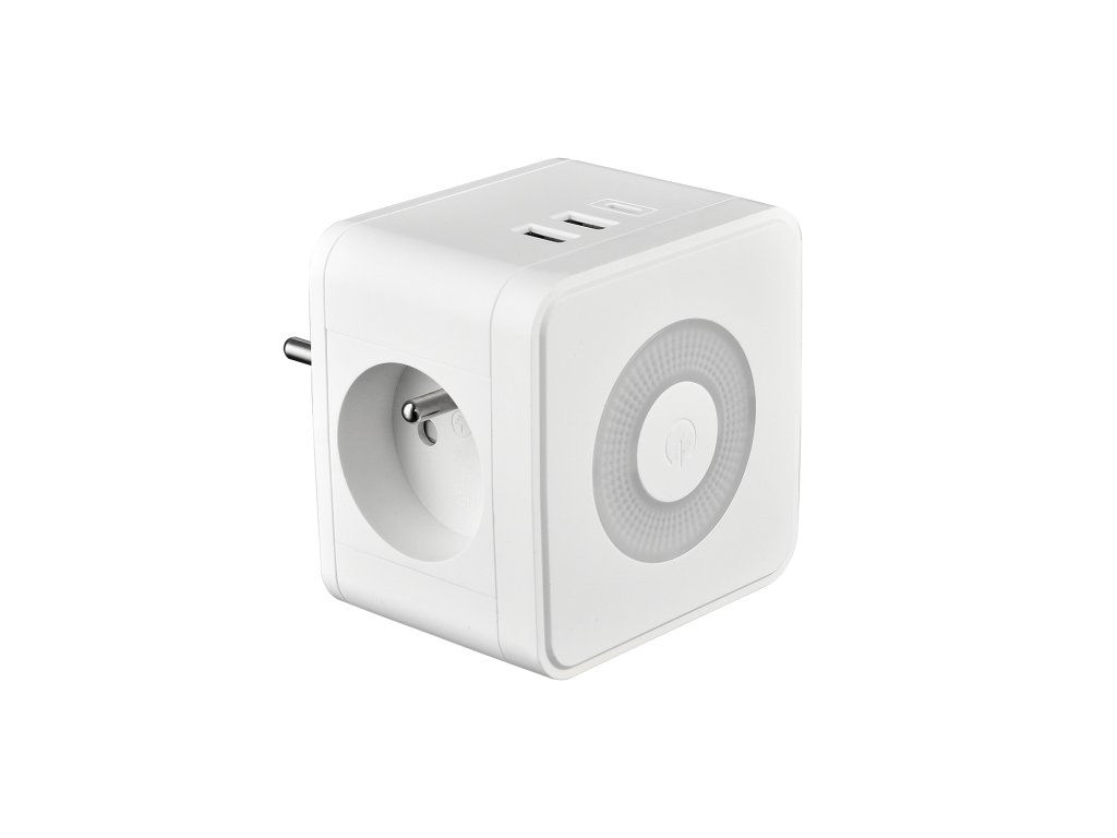 Síťový adaptér; zásuvka; rozbočovač; 2 x AC (230V/16A) výstup; 1 x USB-A (5V/3A, 9V/2A, 12V/1.5A); 2 x USB-C (5V/3A, 9V/2.22A, 12V/1.67A); 5V/3A pro USB-A + USB-C + USB-C; dotykové světlo se třemi intenzitami svícení; kompaktní rozměry a design