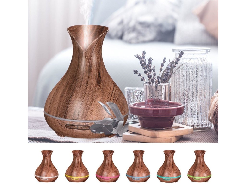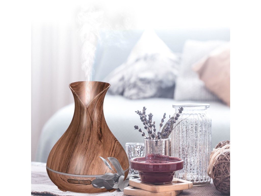 Designový elektrický aroma difuzér Vulcan v barvě šedé dřevo vhodný do každé domácnosti ke zvlhčení vzduchu.