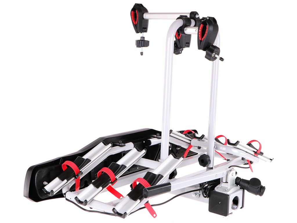 Spolehlivý nosič kol k upevnění na kouli tažného zařízení BIKE 3 pro 3 jízdní kola. Nosič je vyroben z oceli a hliníku. Nosič disponuje jednoduchým systémem upevnění, se sklápěním pro přístup do kufru, s kompletně osvětleným panelem a místem pro registrační značku vozidla. Upevnění kola do nosiče se obejde bez nářadí, provádí se uchycením držáku na rám a dotažením pásků na kolech umístěných na základně. Mechanismus je uzamykací a nehrozí tak odcizení kola. Zajišťovací kolečko pro upevnění jízdního kola je nutné důkladně dotáhnout, aby se překonal odpor prokluzu v zamčené poloze. Nosič je zhotoven z oceli a každá ze základen jízdního kola je z hliníku. Nosič je vybaven panelem s osvětlením a místem pro uchycení registrační značky (SPZ). Světelný panel je připojen k zásuvce tažného zařízení vozidla pomocí 13-pólového konektoru a je vybaven kompletními zadními svítilnami, včetně osvětlení RZ (SPZ). I přes velké rozměry nosiče, je stále umožněn přístup do kufru a to díky důmyslné konstrukci a možnosti sklápění celého nosiče.