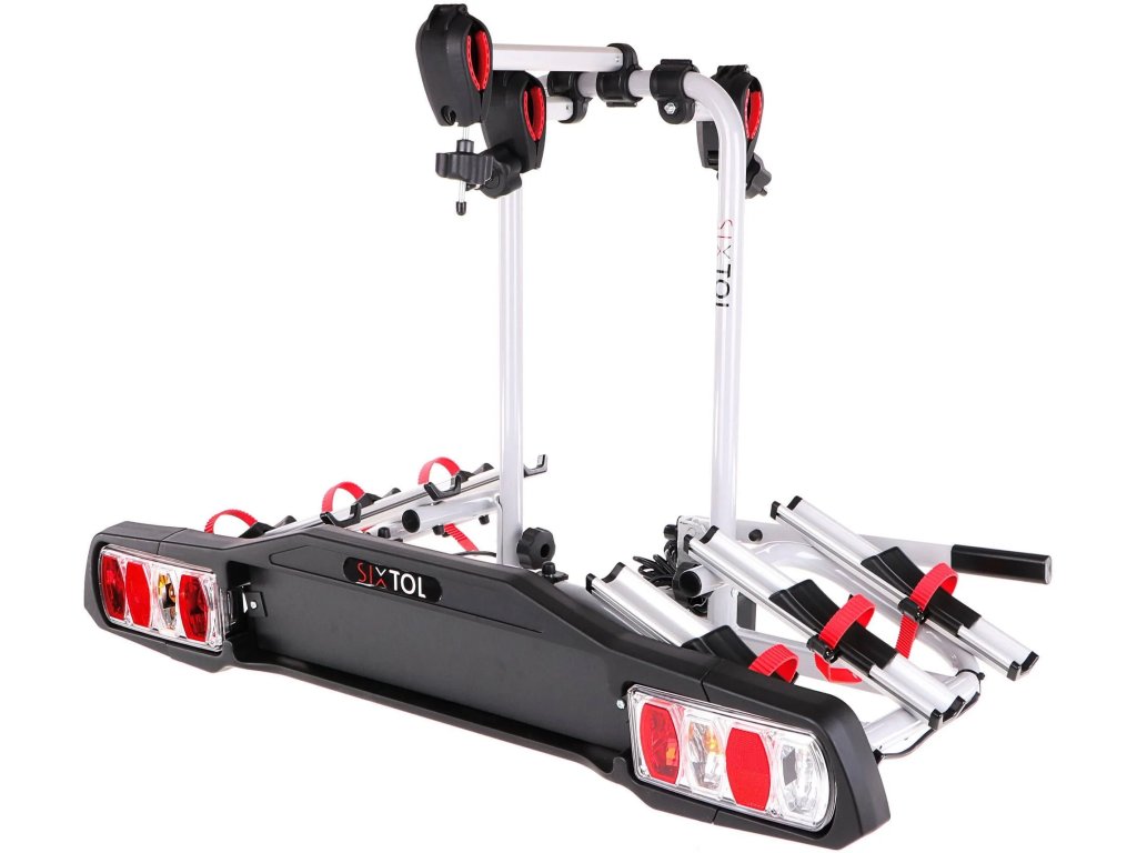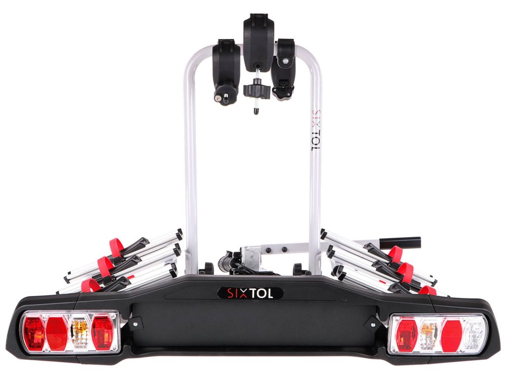 Kvalitní a robustní nosič kol na tažné zařízení SIXTOL BIKE 3 pro tři kola s upevněním kol k nosiči bez nářadí a ochranou proti odcizení.