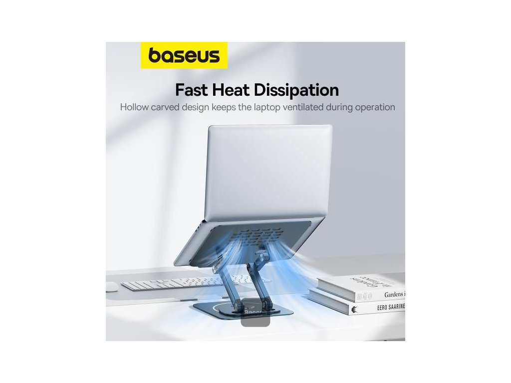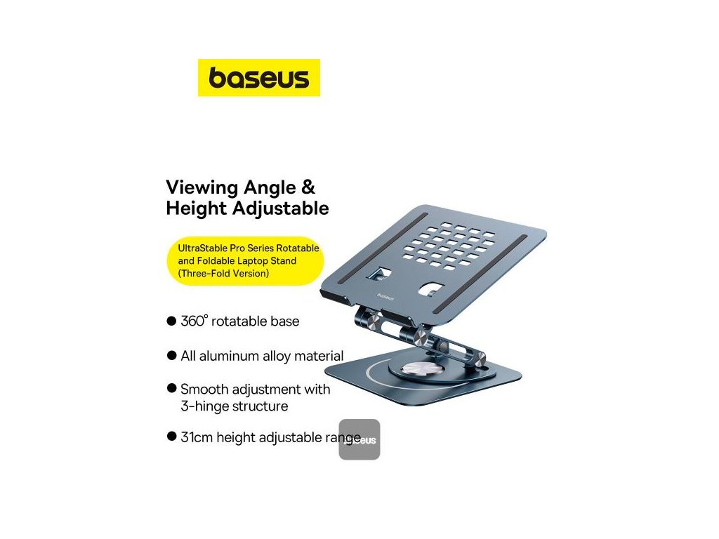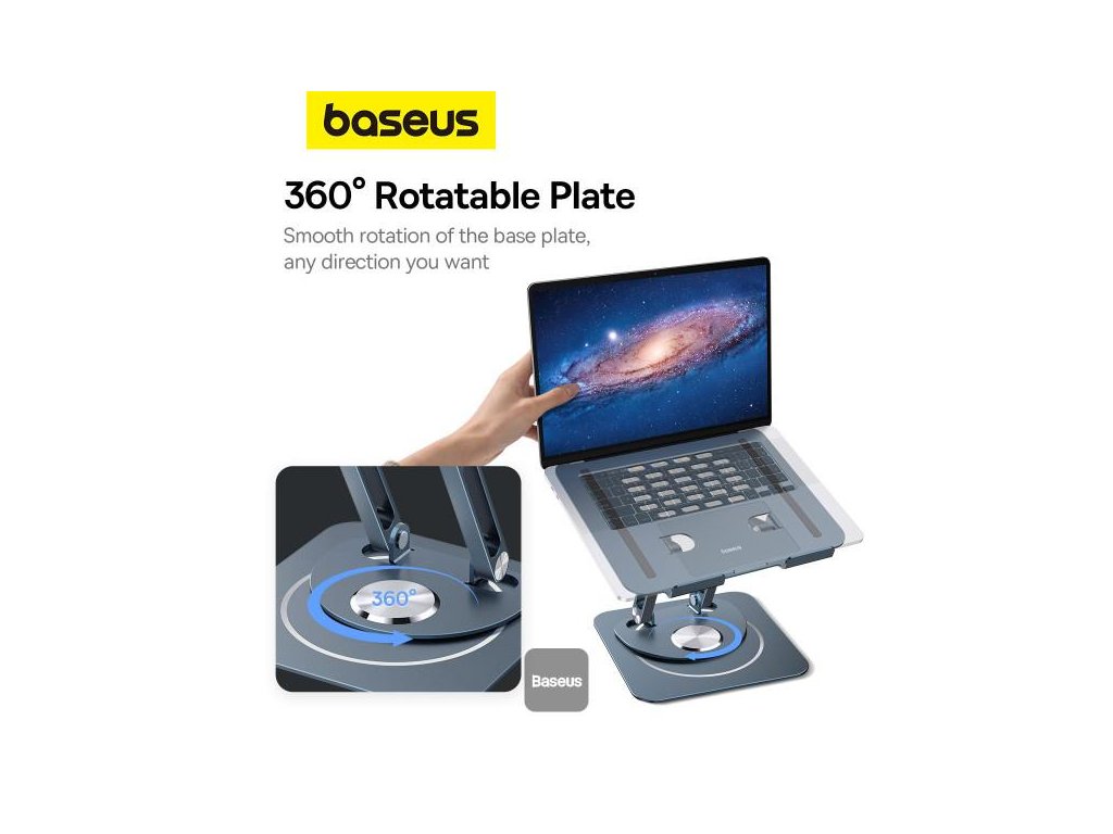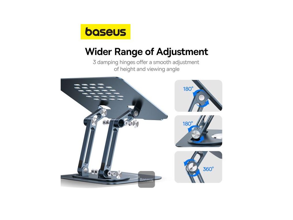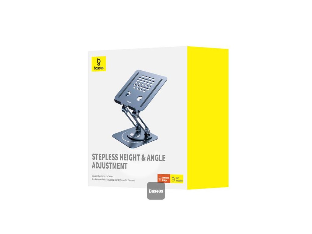 Stojan Baseus pro notebooky a tablety, otočný o 360°, skládací,nosnost 8 kg,nastavení výšky do 31 cm,nastavení pomocí 3kloubové konstrukce,materiál z hliníkové slitiny, barva šedá