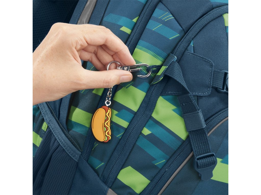 kapsa s organizérem na doklady, psací potřeby, karabinka na klíče a prostorná přední kapsa např. na svačinový box